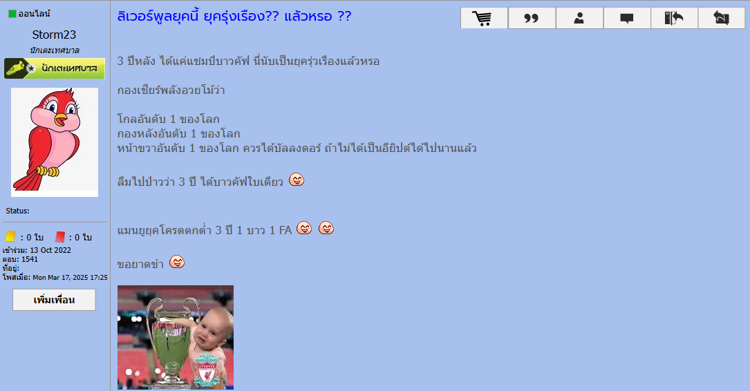 แต่พอของทีมตัวเองนี่ อวดถ้วยน้ำพริกกะถ้วยน้ำจิ้มซะงั้น 3ปี ได้น้ำจิ้ม1 ได้น้ำพริก1 เลยนะจรั๊ฟพรี่ๆ