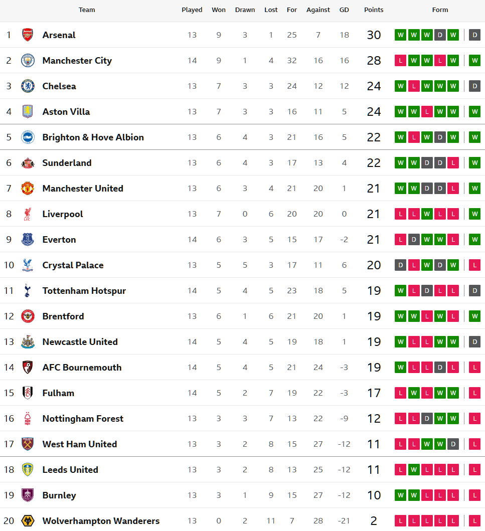 : 0-1 เออร์ลิ่ง ฮาลันด์ น.17, 0-2 ไทจ์ยานี่ ไรจ์นเดอร์ส น.37, 0-3 ฟิล โฟเดน น.44, 1-3 เอมิล สมิธ โรว์ น.45+2, 1-4 ฟิล โฟเดน น.48, 1-5 ซานเดอร์ เบอร์เก้(ทำเข้าประตูตัวเอง) น.54, 2-5 อเล็กซ์ อิโวบี้ น.57, 3-5 ซามูเอล ชุควูเอเซ่ น.72, 4-5 ซามูเอล ชุควูเอเซ่ น.78
