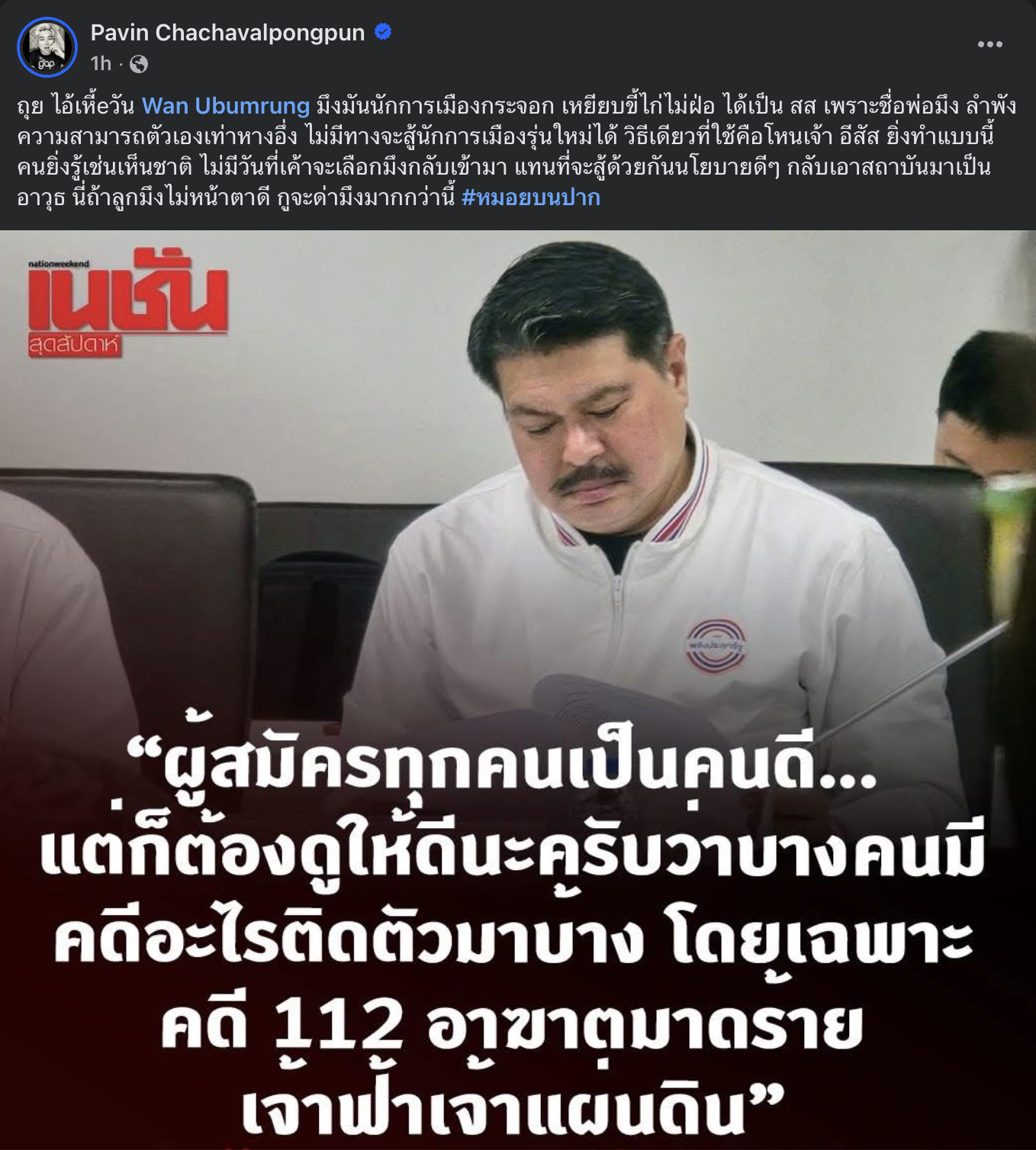 ปากบอกเคารพสถาบันทั้งๆที่คนแรกๆที่ขอให้แก้ 112 ก็คือตัวในหลวงร.9 เอง พระเองค์พูดจากปากชัดขนาดนั้น แต่พวกนี้ก็ยังทำหน้ามึนเอา 112 มาใช้งานเพื่อประโยชน์ตัวเอง