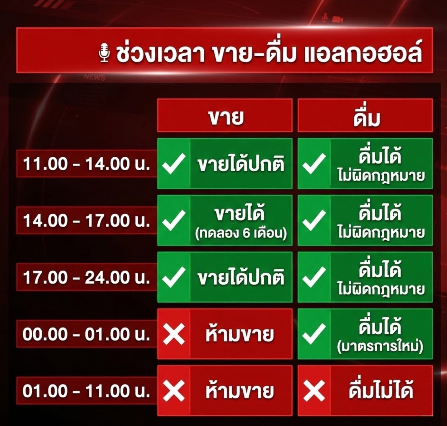 จริงๆ ยกเลิกไปเลนก็ได้นะกฎหมายนี้อะ ให้ขายปกติ 24 ชั่วโมงไปเลย ใครใคร่ดื่มก็ดื่ม แต่ให้ไปเพิ่มโทษและบังคับใช้กฏหมายจริงจังสำหรับเคสเมาแล้วขับและการขายให้แก่บุคคลที่ยังไม่บรรลุนิติภาวะแทน