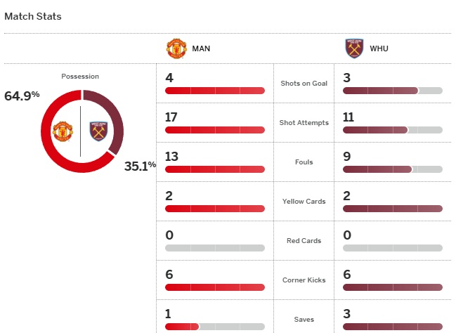 ผ่าน 15 นาที แมนฯยูไนเต็ดไม่ได้เหนือกว่า แต่กลับเป็นเวสต์แฮมที่ได้ครองบอลบุกได้ใกล้เคียงกับเจ้าถิ่น