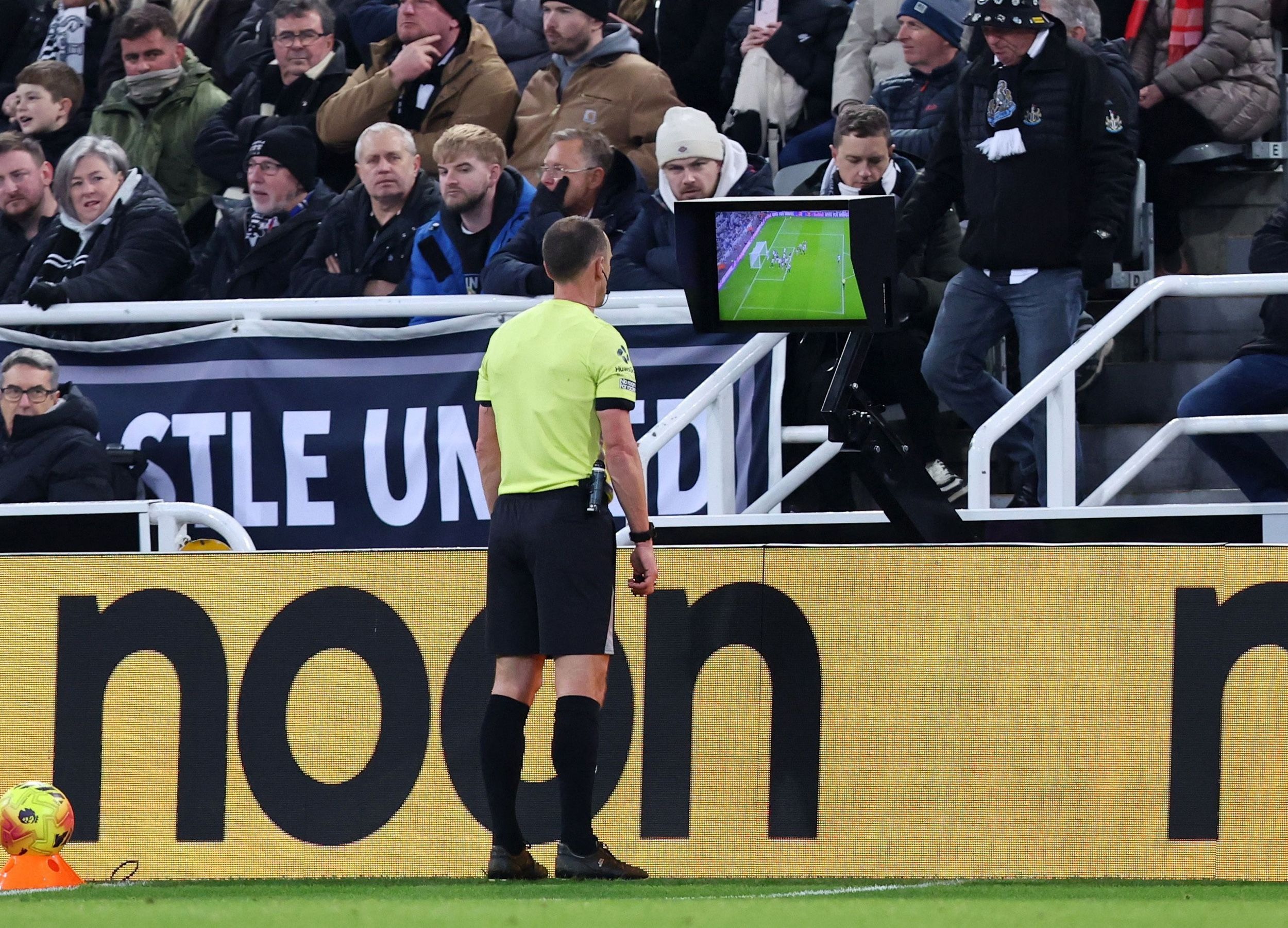 ทดเจ็บนาทีสุดท้ายของครึ่งแรก นิวคาสเซิ่ล ยังได้จุดโทษอีกในจังหวะครอสเข้าเขตโทษแล้ว อูโกชุควู วิ่งมาน่าจะกลัวชน โวลเตอมาเดอ เลยยกแขนขึ้นมากันไม่ให้ชนแต่กลายเป็นบอลมาโดนแขนแทน กรรมการเช็คภาพช้าแล้วแจกให้