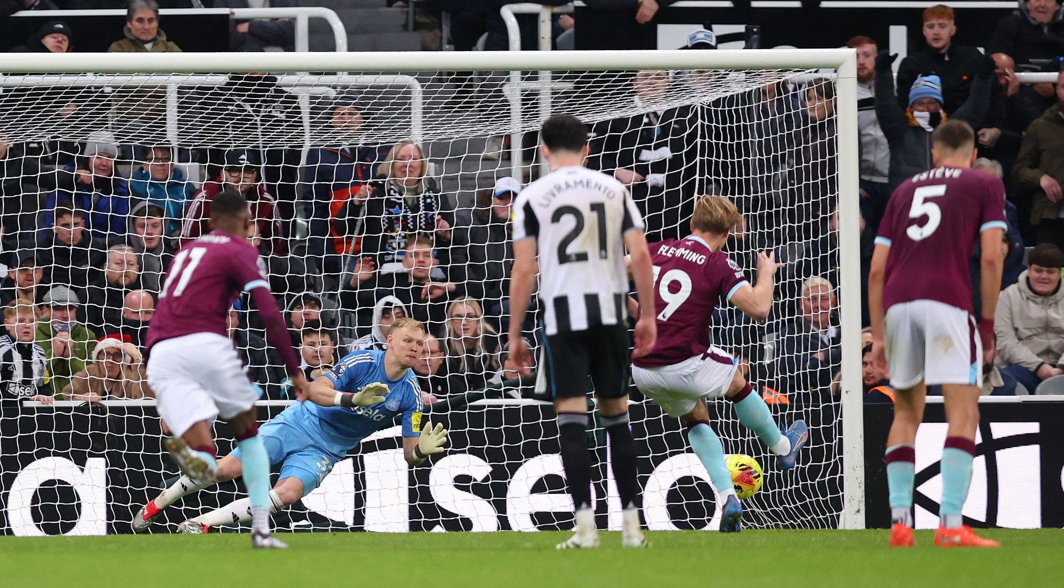 หลังจากนั้นแม้ เบิร์นลี่ย์ บุกไปแต่ทำอะไรไม่ได้มากก่อนที่ นิวคาสเซิ่ล มีโอกาสอีกหลังถูกเปิดถูกสกัดมาหา กีมาไรส์ หน้าเขตโทษจับบอลลงก่อนจะตัดสินใจยิงติดไซด์ก้อยส่งบอลพุ่งไปโดนปัดข้ามคาน