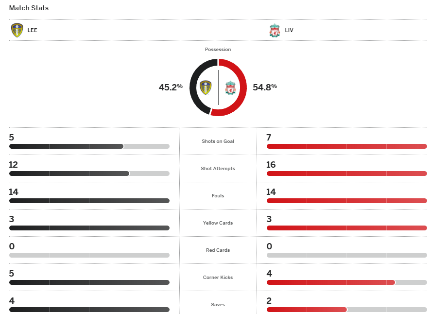 อูโก้ เอกิติเก้ อุตส่าห์รับของขวัญจากความผิดพลาดของลีดส์ ยิงนำ 2-0 แต่อิบราฮิมา โคนาเต้ มาทำเสียจุดโทษส่งแรงฮึดให้เจ้าถิ่นไล่มาเป็น 2-2 แต่โดมินิก โซบอสซ์ไล ยิงขึ้นนำอีกครั้งเป็น 3-2 แต่ทดเวลาบาดเจ็บนาทีที่ 90+6 เป็นอาโอะ ทานากะ ยิงเตะมุมเข้าไปทำให้เสมอกันในท้ายที่สุด 3-3