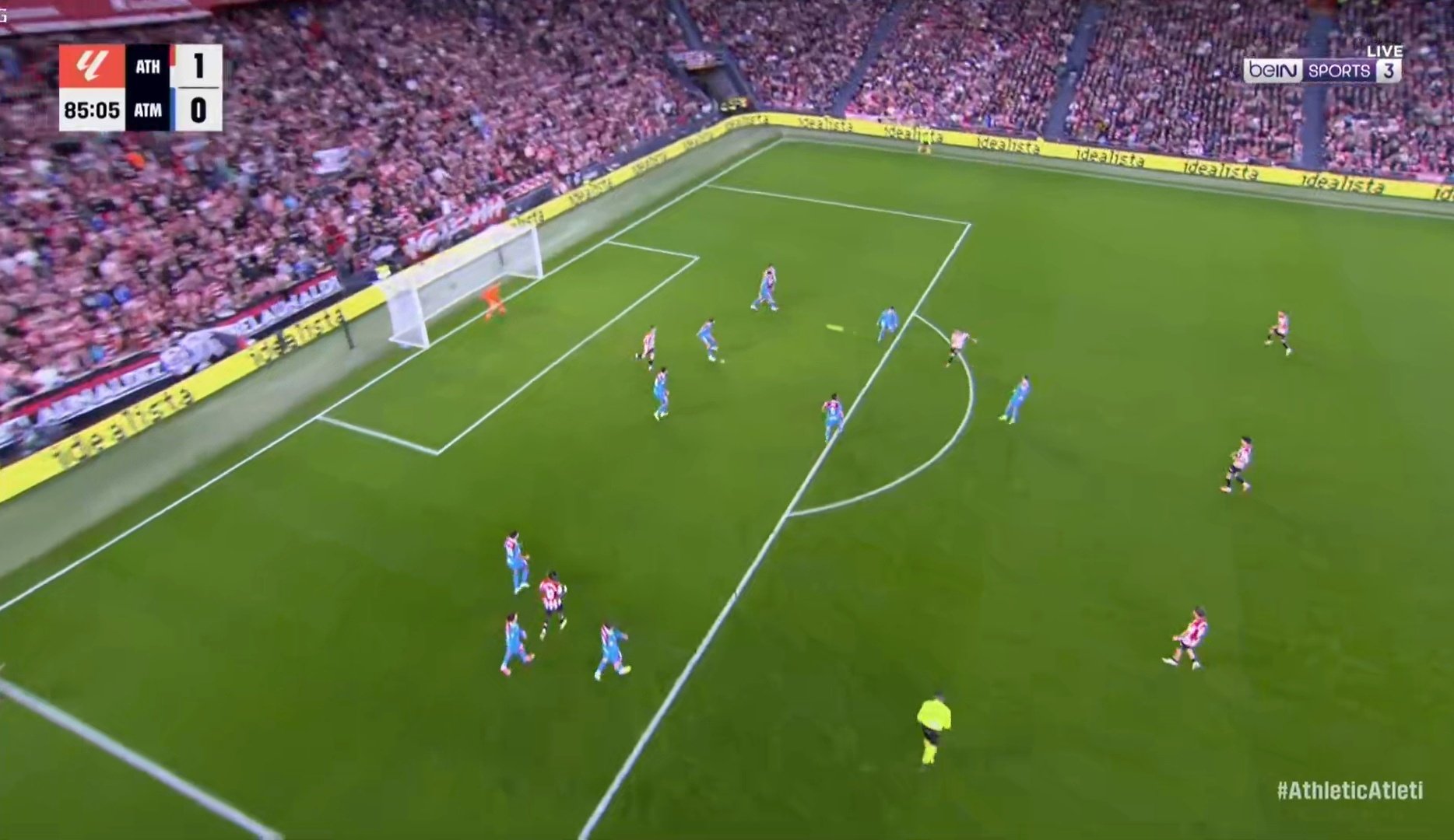 บิลเบา ได้เตะมุม เบเรนเกร์ เปิดเข้าหัว ปาเรเดส กระโดดโหม่งได้แต่โดนใต้บอลไปหน่อย เลยเหินข้ามคานออกไป