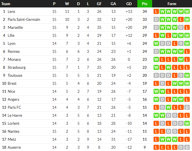 สรุปผล ลีกเอิง เสาร์ที่ 6 ธันวาคม 2025