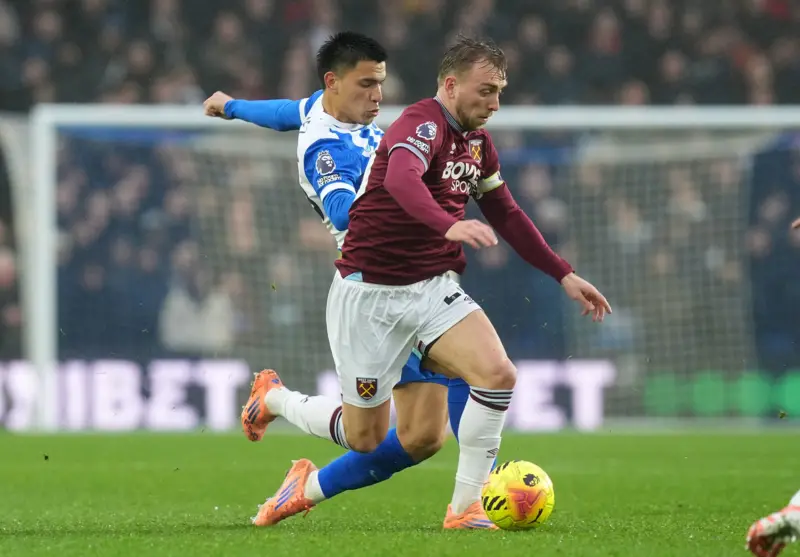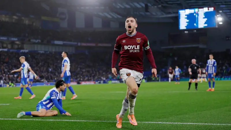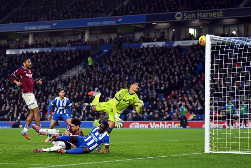 จาร์ร็อด โบเว่น โฉบยิงประตูให้เวสต์แฮม ยูไนเต็ด ขึ้นนำไปก่อน แต่ไบรท์ตัน โถมบุกอย่างหนักก่อนมาเป็นจอร์จินิโอ้ รุตแตร์กดมุมแคบเข้าไปแถม VAR เช็คผ่านไม่แฮนด์บอลทำให้ไบรท์ตัน รอดแพ้คาบ้าน 2 เกมติดไล่ตีเสมอ 1-1
