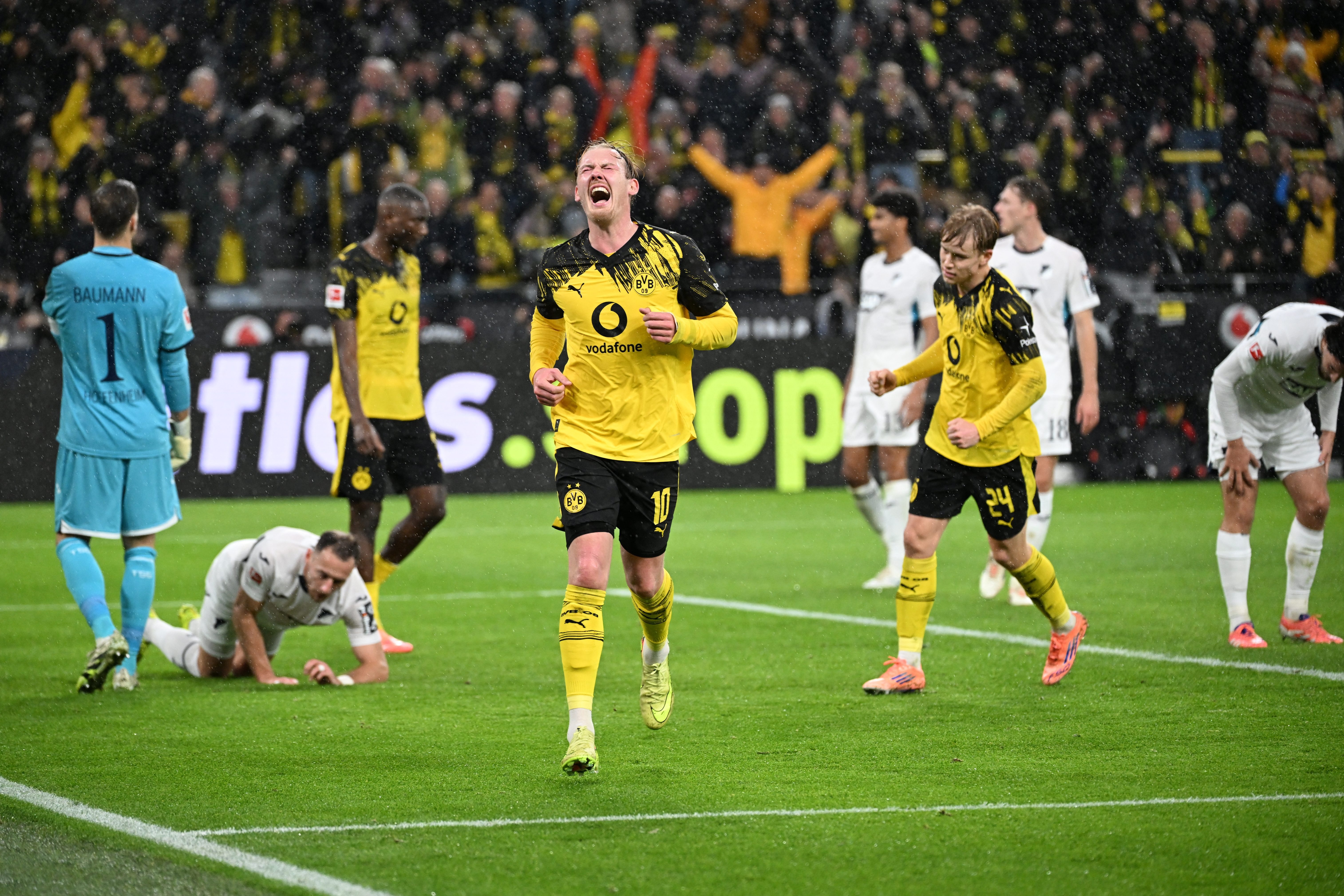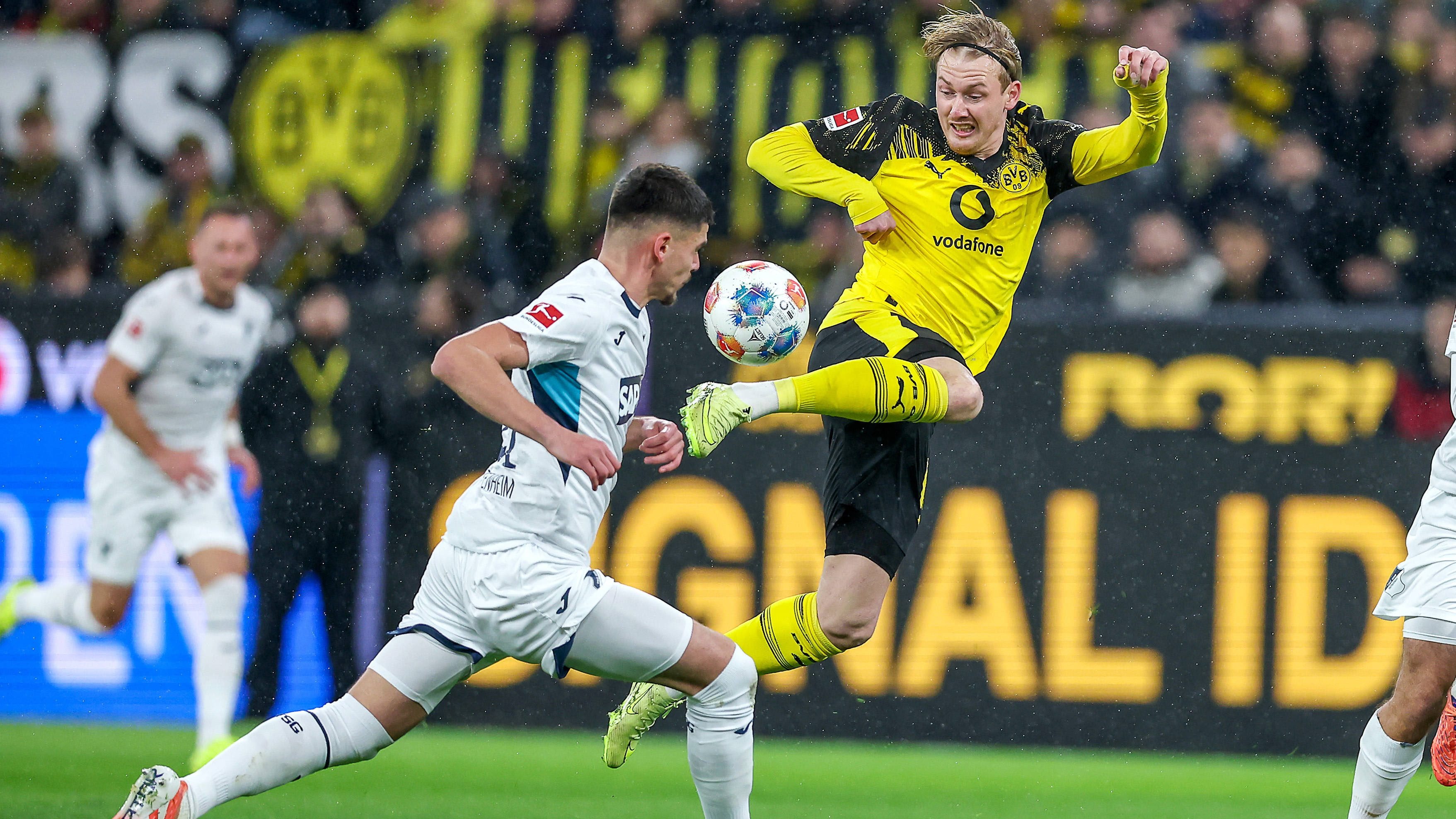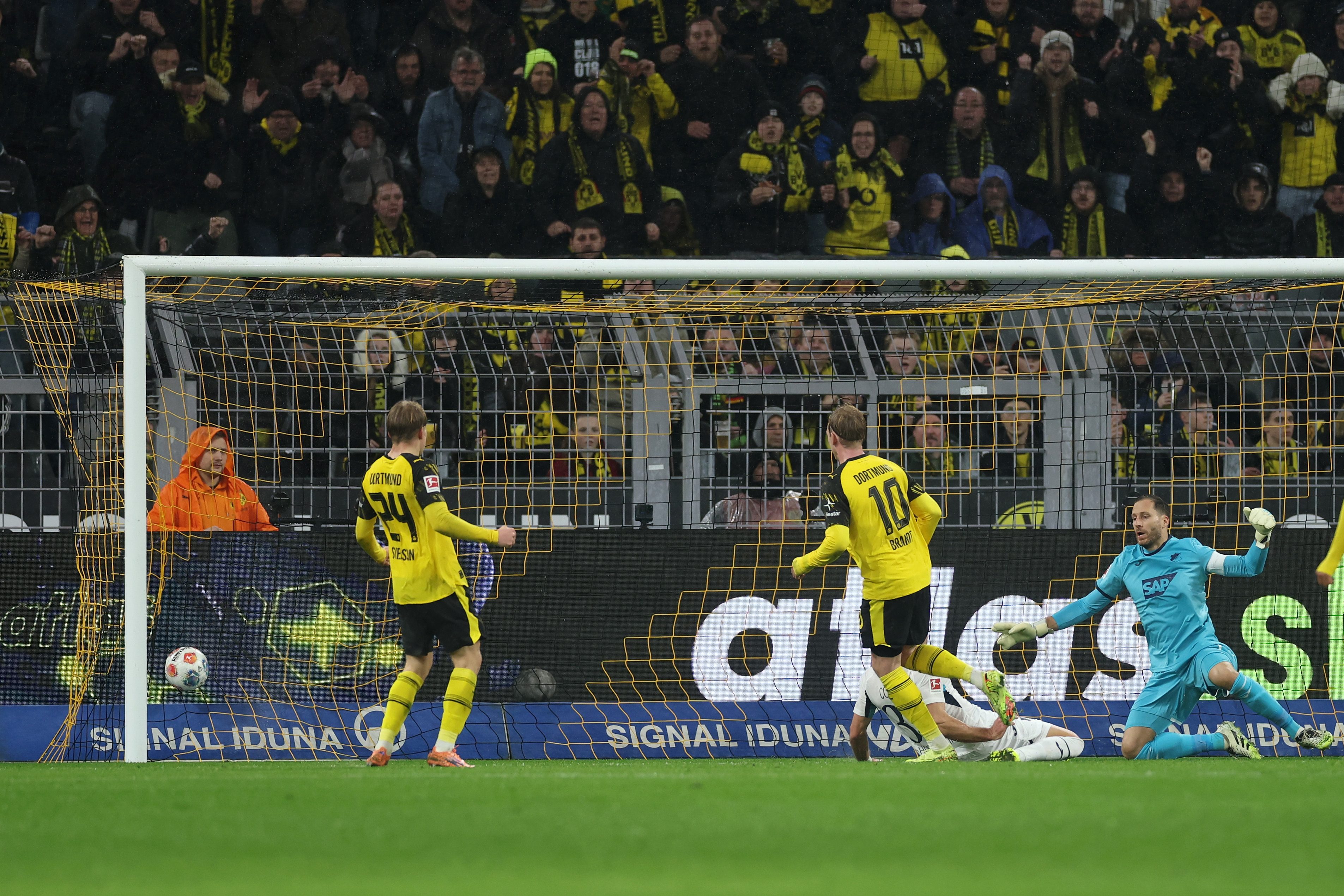 โบรุสเซีย ดอร์ทมุนด์ เจอกับทีมฟอร์มดีแบบ ฮอฟเฟ่นไฮม์ แต่ก็ยังผ่านไปได้หลังจาก ยูเลี่ยน บรันท์ ยิงออกนำก่อนที่ นิโก้ ชล๊อตเตอร์เบ็ค บวกประตูเพิ่มพา เสือเหลือง คว้าชัย 2-0 ทำให้อันดับ 3 ยังเป็นของพวกเขา