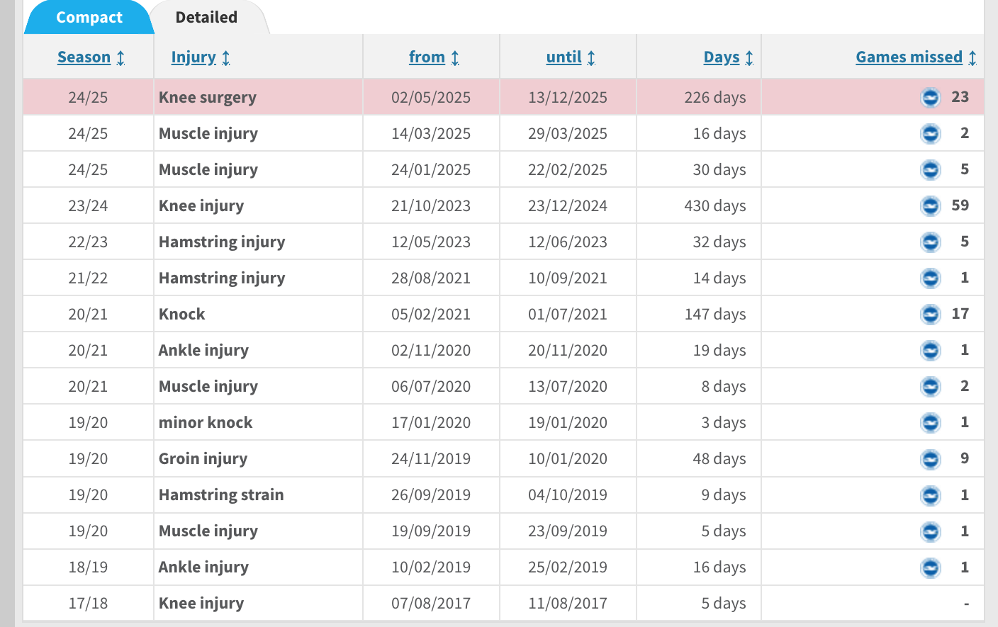 นึกว่าย้ายทีมไปละ เพราะเห็นไบรท์ตันลงเตะทีไรก็มีชื่อแกเจ็บอยู่ตลอด เหมือนจะเจ็บตั้งแต่ช่วงโค้ชคนเก่าที่ฟอร์มดีๆเลยหรือเปล่า ตัวแบกไบร์ทตันเลยน่าเสียดาย อย่างมิโตมะยังเห็นหายมาช่วยทีมมั่งถึงจะเจ็บบ่อยเหมือนกัน