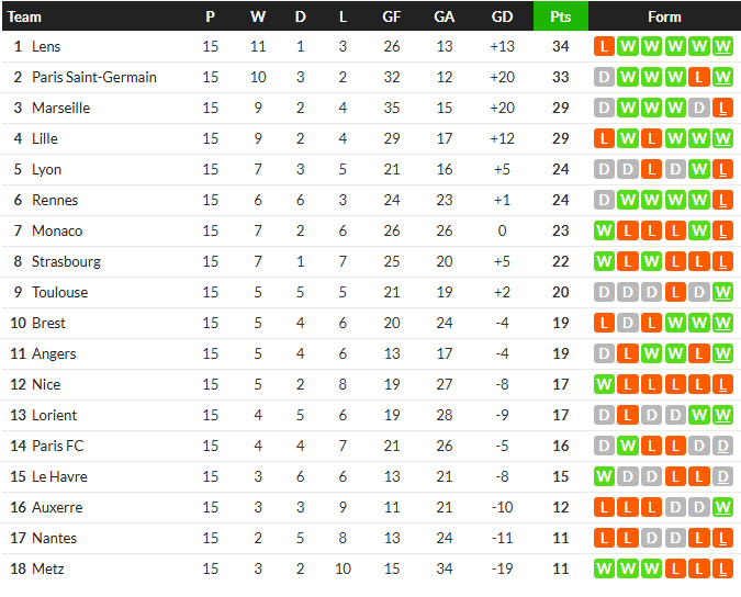 สรุปผล ลีกเอิง อาทิตย์ที่ 7 ธันวาคม 2025