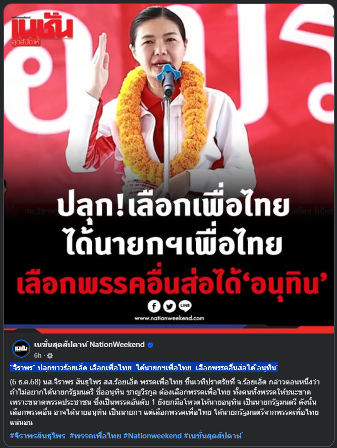 [RE: "จิราพร" ปลุกชาวร้อยเอ็ด เลือกเพื่อไทย ได้นายกฯเพื่อไทย เลือกพรรคอื่นส่อได้‘อนุทิน’]