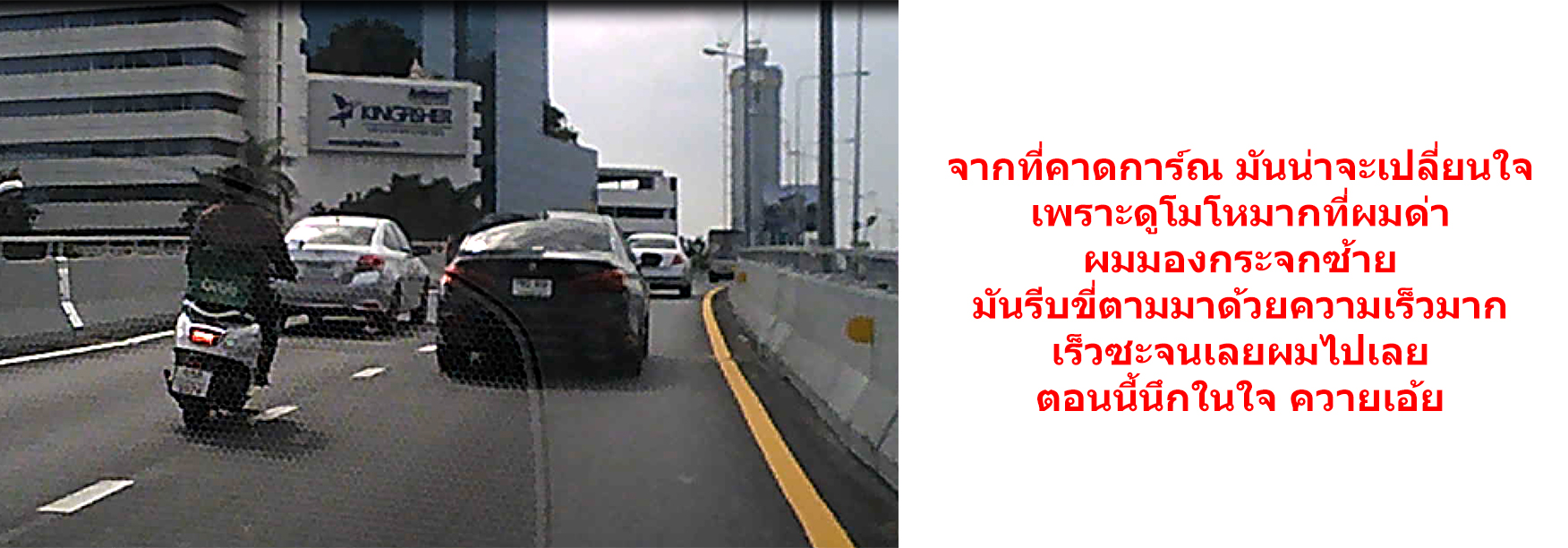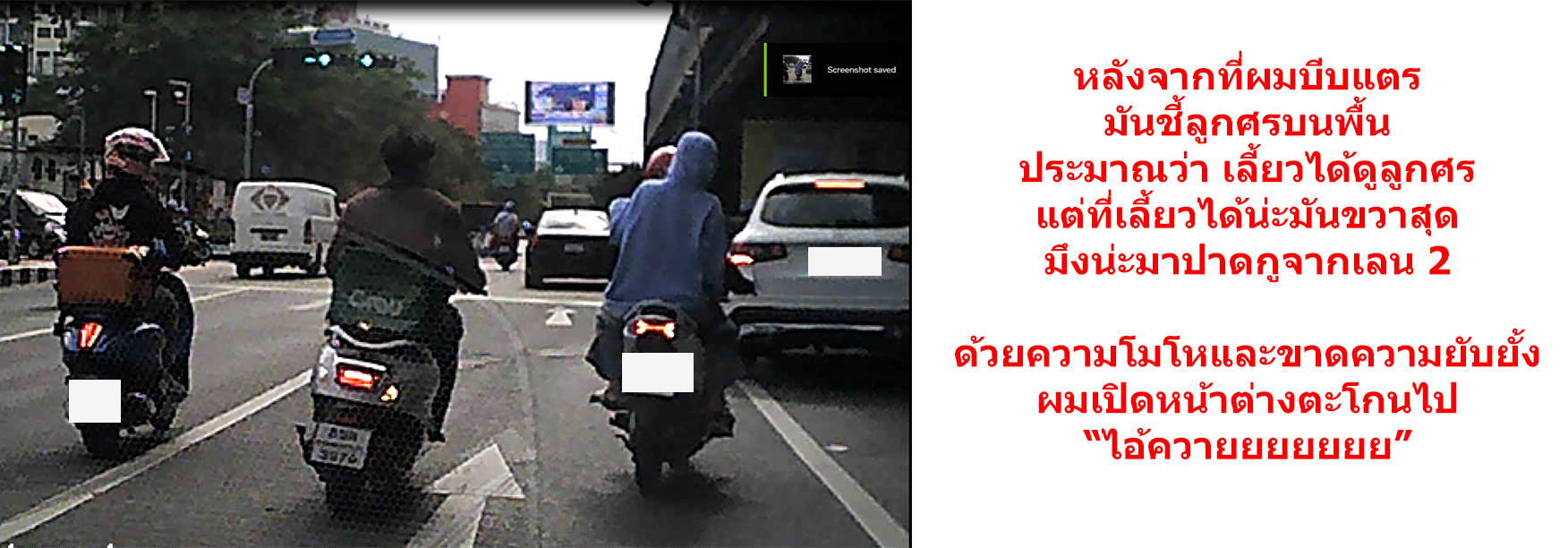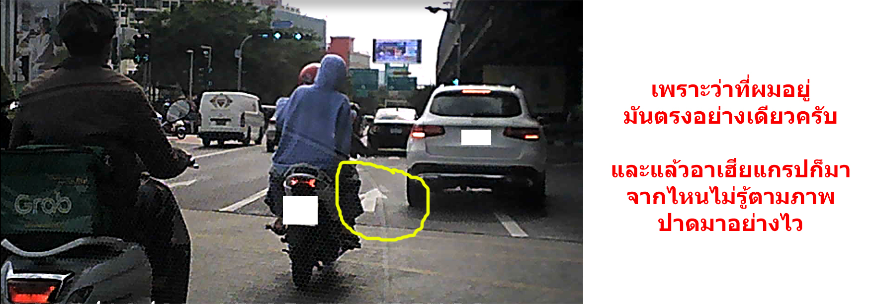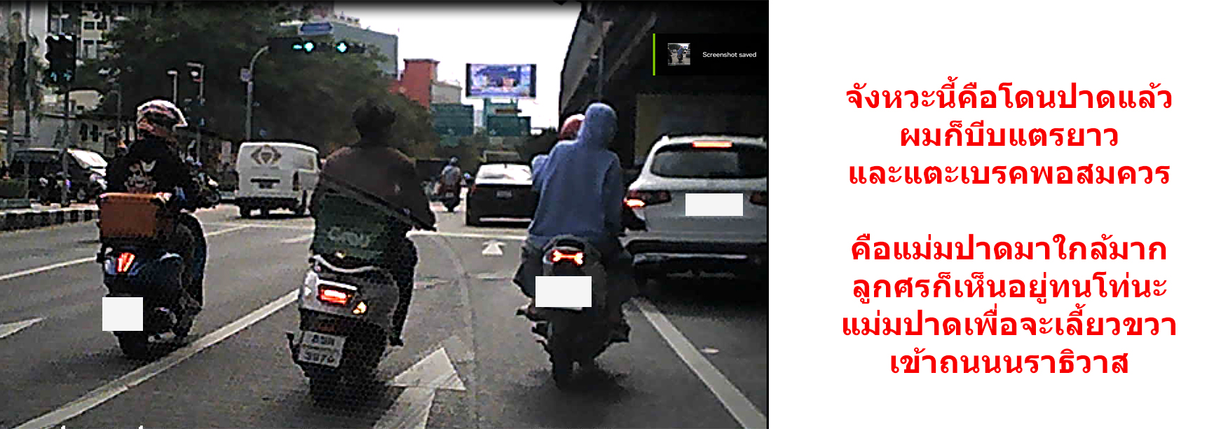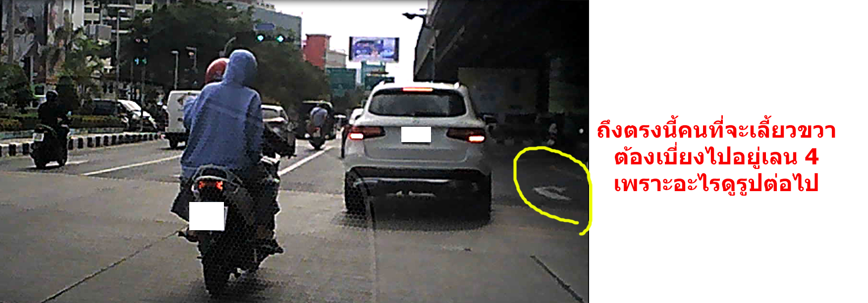 เหตุผลเพราะเรื่องพวกนี้แหละ คือคนที่มาจากสะพานข้ามแยกเนี่ย (ถ้าใครดูลิ้งค์จขกท ให้ย้อนกลับไป 100-200 เมตรได้จะเห็นว่ามันจะมาบรรจบกับทางลงด้านซ้าย สะพานนั่นแหละ) มีเยอะ-เยอะมากที่พยายามตัดเข้าขวามือเพื่อวิ่งไปเส้นนราธิวาส-แยกสีลม แล้วระยะทางมันไม่พอ (เคยเกือบชนทีนึงตอนลงสะพานข้ามแยก เพราะทางตรงวิ่งกันโคตรไว.. รีบไปไหนกันอะถามจริง