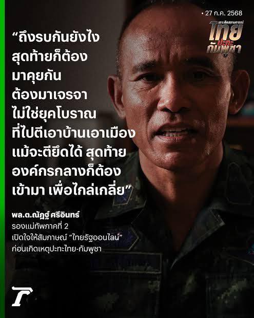 ก้แสดงว่าสงครามชายแดนตลอดมาที่มีคนขาขาด มีคนเสียชีวิตเนี่ย เป็นแค่เหยื่อจากเกมการเมืองของอนุทินกับพวกอนุรักษ์นิยมและกลุ่มอำมาตย์ที่อยู่ใกล้ชิดกับเบื้องบนเท่านั้น รอบนี้ก็เหมืือนกัน ฮึ่มๆจะรบกับเขาเนี่ย คิดสักหน่อยก็ดีว่าตกลงแล้วมันทำไปแล้วได้อะไรนอกจากกระแสชาตินิยมชั่วครู่
