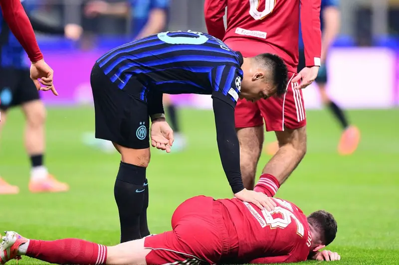 อิบราฮิมา โคนาเต้ โขกตุงตาข่ายก่อนในครึ่งแรกแต่โดน VAR จับแฮนด์บอล ก่อนลิเวอร์พูล ที่เล่นเนิบๆ มาได้จุดโทษท้ายเกมจากจังหวะที่ VAR มาเช็คฟลอเรียน เวียร์ตซ์ โดนดึงเสื้อล้มก่อนเป็นโดมินิก โซบอสซ์ไล รับอาสายิงไม่พลาดบุกชนะอินเตอร์ มิลาน 1-0 กลับสู่โซนเข้ารอบอัตโนมัติในอันดับ 8