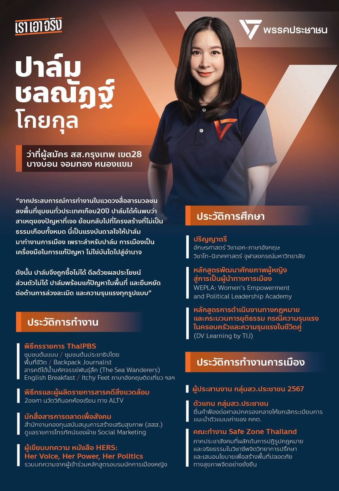 [RE: ดูทรงผู้สมัครส้ม "ปาล์ม บางบอน" กทม.เขต 28 (แทน สส.ไอซ์)]