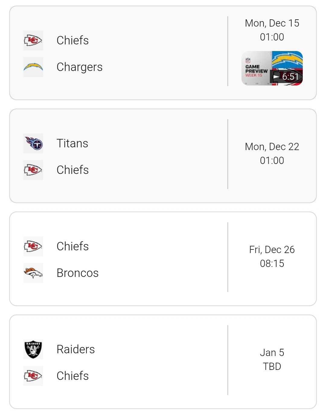 Chiefs ฟอร์มไม่ดี แต่ Chargers ตัวเจ็บอย่างเยอะโดยเฉพาะ OT ตัวจริงเจ็บหมดเลย ถ้า Edge Rusher ทำดีๆ Herbert คงเล่นไม่ออกอีกตามเคย ในฐานะแฟน Chargers ไม่มีความมั่นใจเลยว่าจะชนะ เล่นในบ้าน Chiefs ด้วย