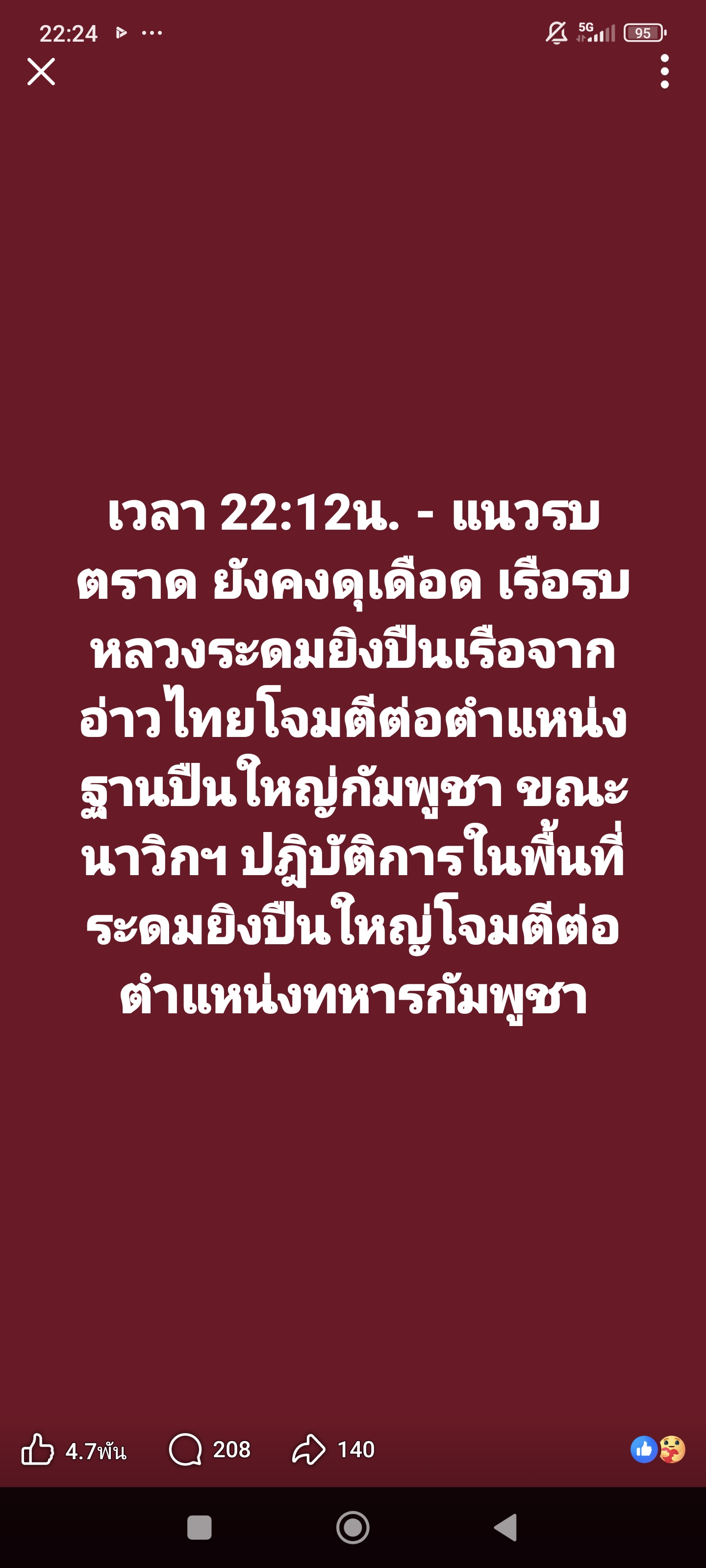 [RE: ไปกันต่อ 22.00 ยังยิงกันทุกเเนวรบ ทั้ง เขมร-ไทย]