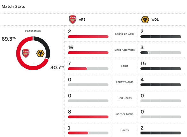 ปืนใหญ่ อาร์เซนอล เกือบ บ๊วยติดคอ มาเจอวูล์ฟส์ในวันที่คึกเป็นพิเศษ ช่วยกันวิ่งช่วยกันไล่ ระเบียบวินัยเกมรับดีสุดๆ วางรถบัสกางตำราอุดซะจนเจ้าถิ่นเจาะไม่เข้า ก่อนมีโชคมาได้ 2 ประตูชี้ชัยจากการทำเข้าประตูตัวเอง เริ่มจาก บูคาโย่ ซาก้า เปิดเตะมุมไปชนเสาไกลมาโดนหลัง แซม จอห์นสตัน เข้าประตูนาที 70 และบอลไปโดน เยอร์สัน มอสเกร่าเป็นคนสุดๆท้าย ให้ทีมพลิกกลับมาชนะนาที 90+4 เก็บ 3 คะแนนสำคัญ หนีแมนเชสเตอร์ ซิตี้ เป็น 5 คะแนน
