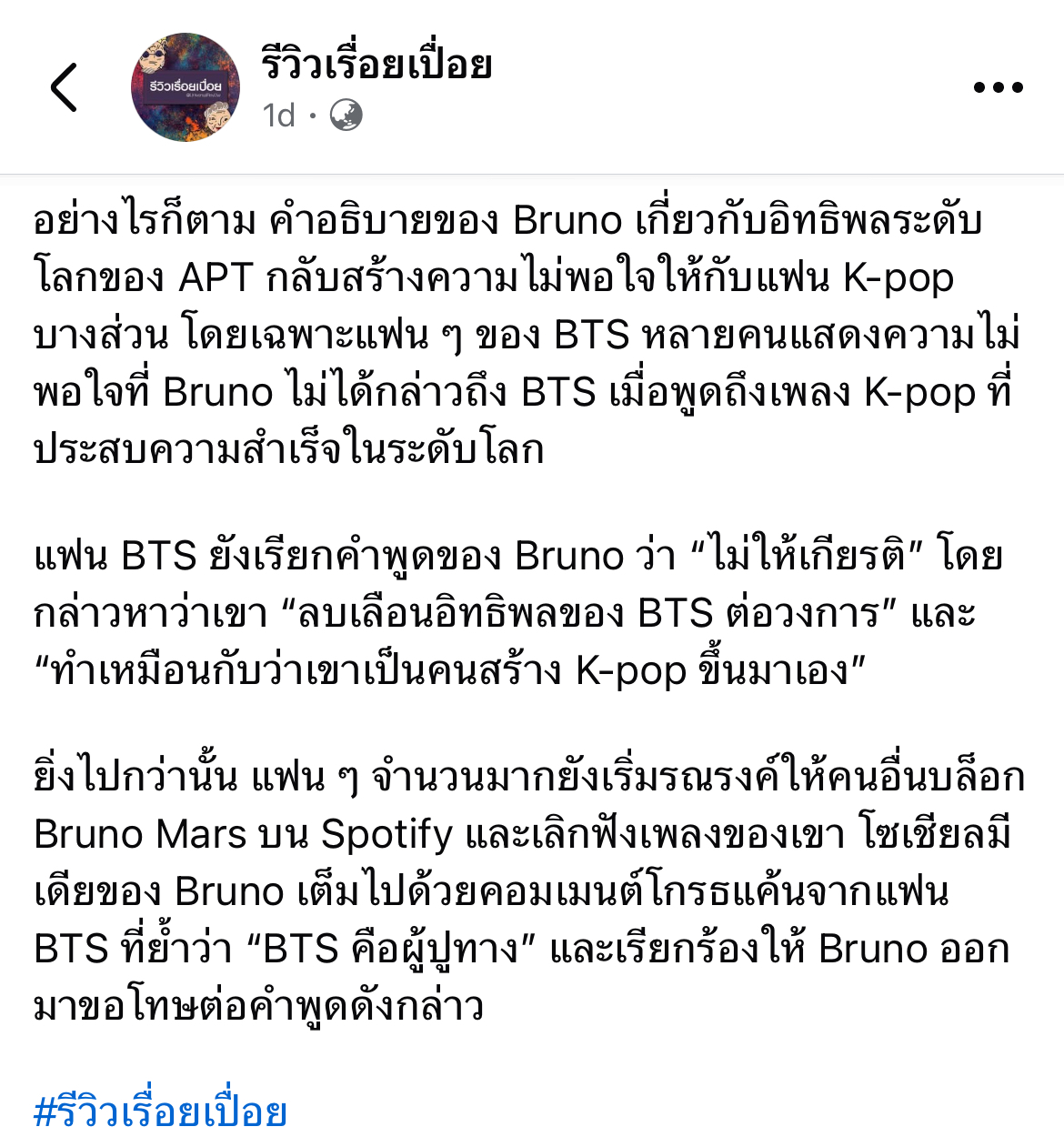 [RE: Bruno Mars โดนติ่งBTSทัวร์ลง]