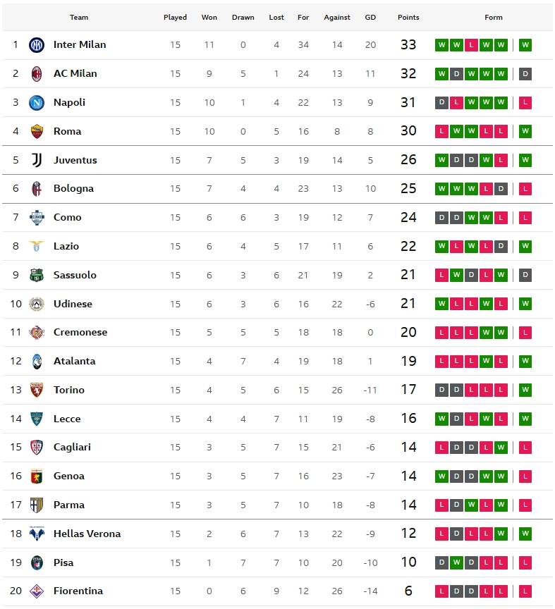 อาแอส โรม่า คืนฟอร์มเก่งหลังก่อนหน้านี้แพ้ในลีกมา 2 นัดติดต่อกัน ล่าสุดเปิดบ้านเอาชนะ โคโม่ 1-0 ได้ประตูชัยจาก เวสลี่ย์ นาทีที่ 61 ทำให้ทีมของ จาน ปิเอโร่ กาสเปรินี่ รั้งอันดับ 4 อย่างเหนียวแน่น ตามหลังจ่าฝูง อินเตอร์ มิลาน เพียง 3 คะแนนเท่านั้น