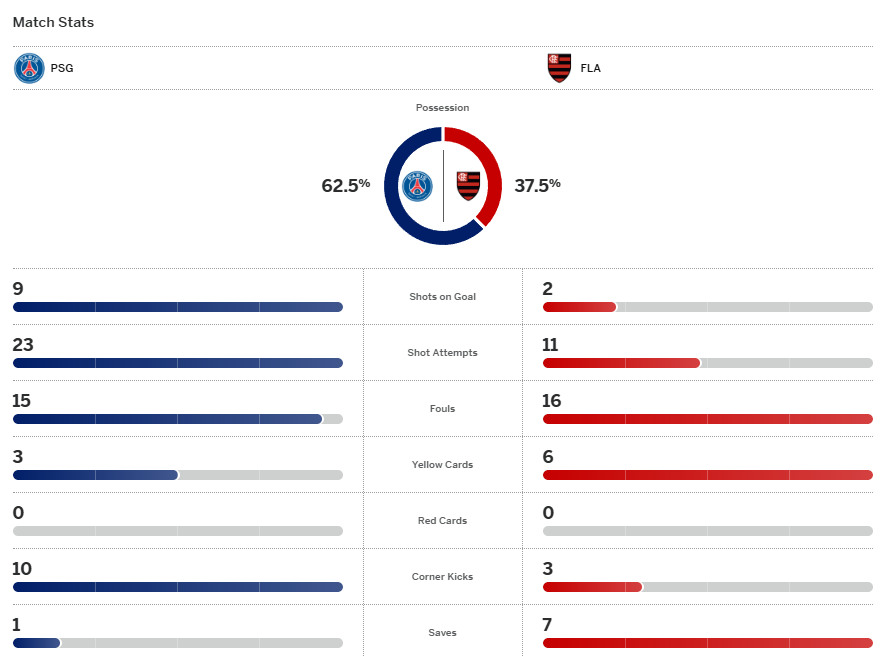 เปแอสเช เกือบจะมีประตูออกนำไปก่อนจากการเพรสซิ่งจนทำให้ ฟลาเมนโก้ ต้องส่งบอลคืนหลัง รอสซี่ รีบวิ่งมาเตะทิ้งขึ้นหน้าก่อนบอลออกหลังแต่ลอยไปหา เนเวส โหม่งเข้าทาง รุยซ์ ยิงสวนจากหน้าเขตโทษเข้าประตูโล่งๆ