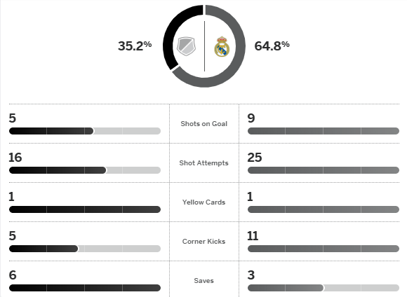 เรอัล มาดริด ได้จุดโทษ คีเลียน เอ็มบัปเป้ กับจังหวะคู่แข่งทำเข้าโกล์ตัวเองทิ้งห่างตั้งแต่ครึ่งแรก แล้วครึ่งหลังบวกเพิ่มไม่ได้จน 10 นาทีท้ายมีเสียวเพราะ ทาลาเบร่า คู่แข่งระดับดิวิชั่น 3 ตีตึ้นขึ้นมาถึงสองครั้งแต่ เอ็มบัปเป้ ผลิตอีกสกอร์ ช่วยบุกเฉือน 3-2 เข้ารอบ 16 ทีม โกปา เดล เรย์