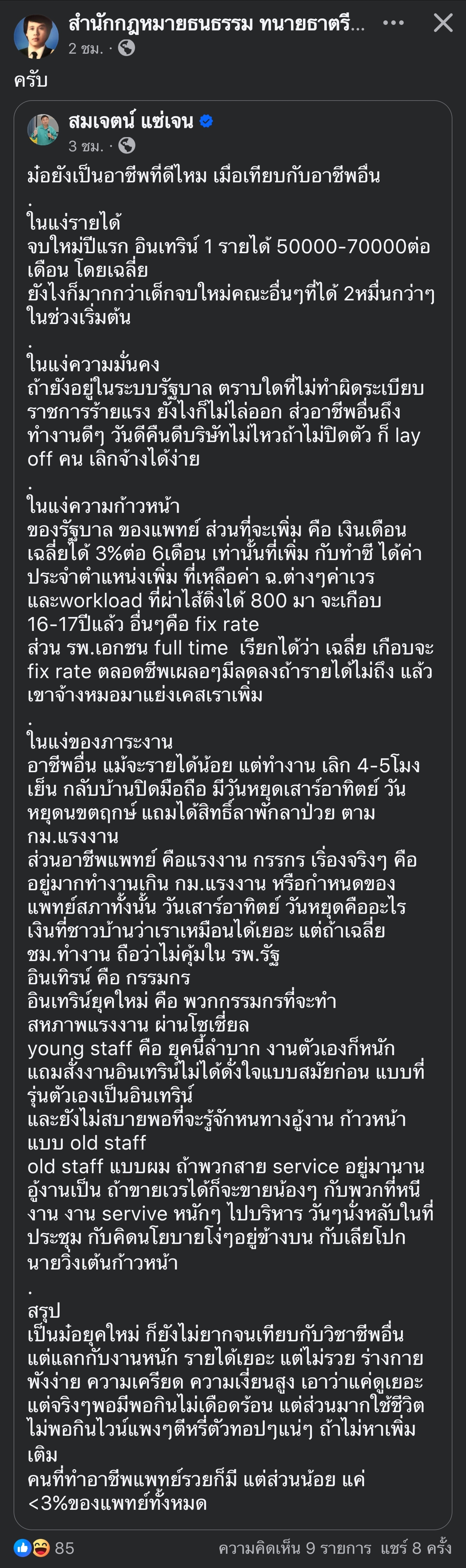 [RE: หมอยังเป็นอาชีพที่ดีไหม เมื่อเทียบกับอาชีพอื่น]