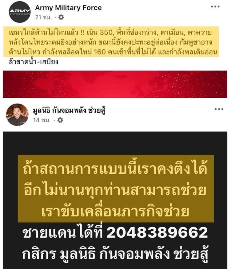 ..ของกันเค้าน่าจะหมายถึงมูลนิธิของเค้าเองไม่ได้เกี่ยวกับสถานการณ์การรบ ก่อนหน้านั้นเค้าก็โพสว่าใช้ไป 30กว่าล้านแล้วประมาณนั้น