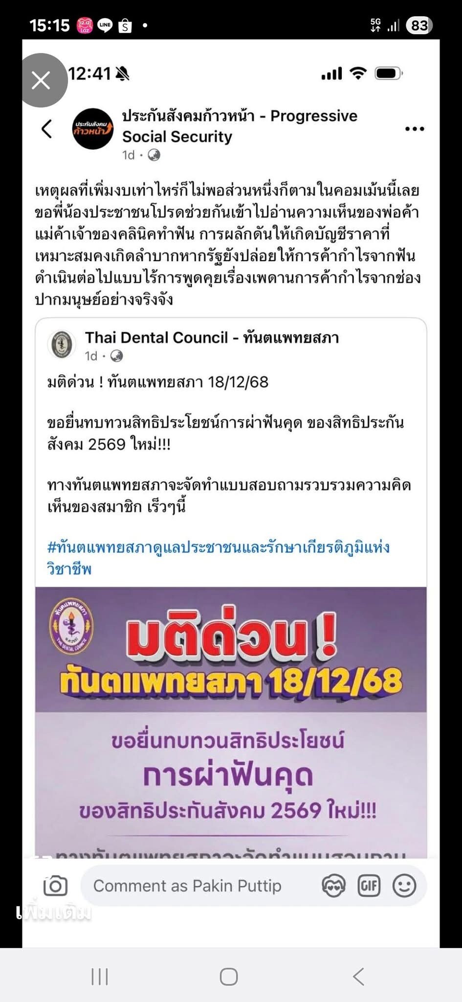 [RE: แก๊งค์ประกันสังคมก้าวหน้ากำลังวอร์กับทันตแพทย์ทั้งประเทศ]