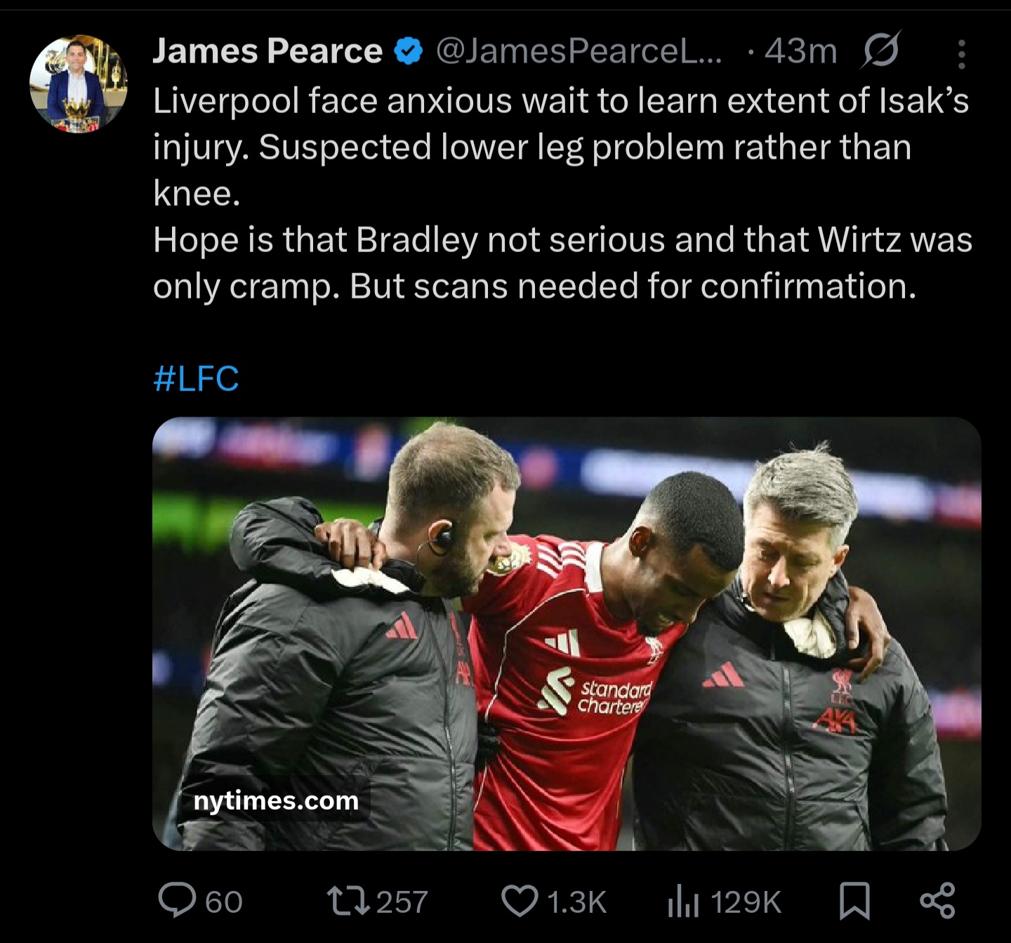 ACL เลยหรอ รักษากันเป็นปี หายแล้วก็ไม่รู้จะเป็นเหมือนเดิมมั้ย (เหมือนเคสฟานไดจ์โดนพิคฟอร์ดจงใจเสียบ) โคตรซวยทั้งหงส์ทั้งอิสัค