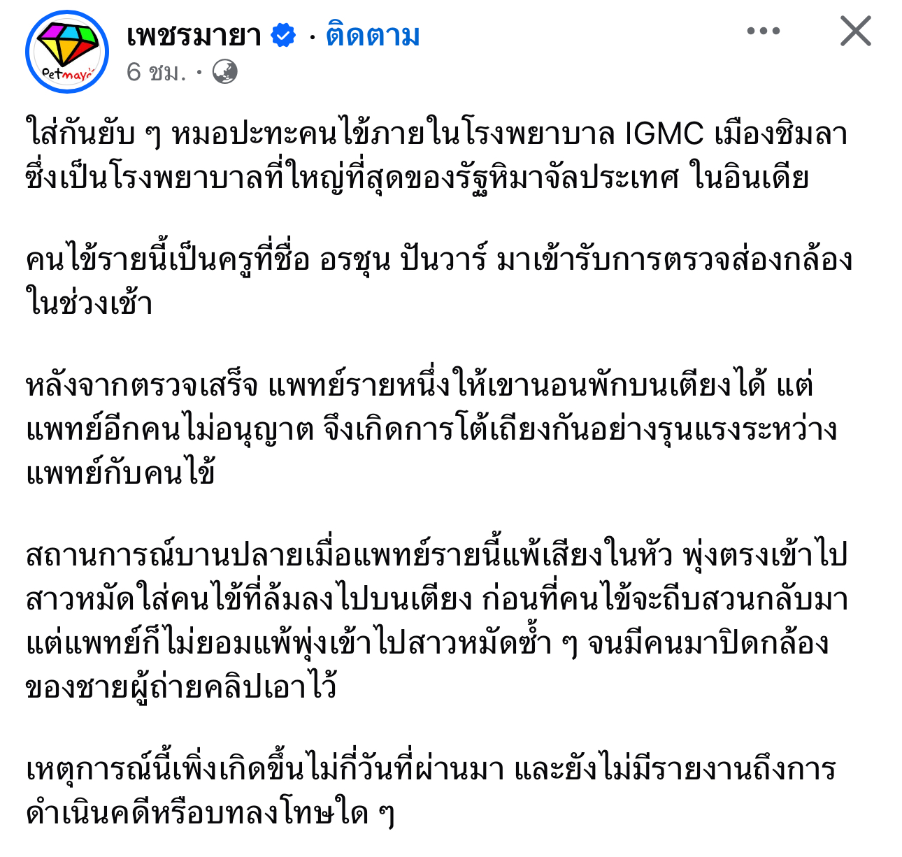 คิดว่าเกิดมาเพิ่งจะเคยเจอข่าวหมอใส่เดี่ยวกับคนไข้ครั้งแรก