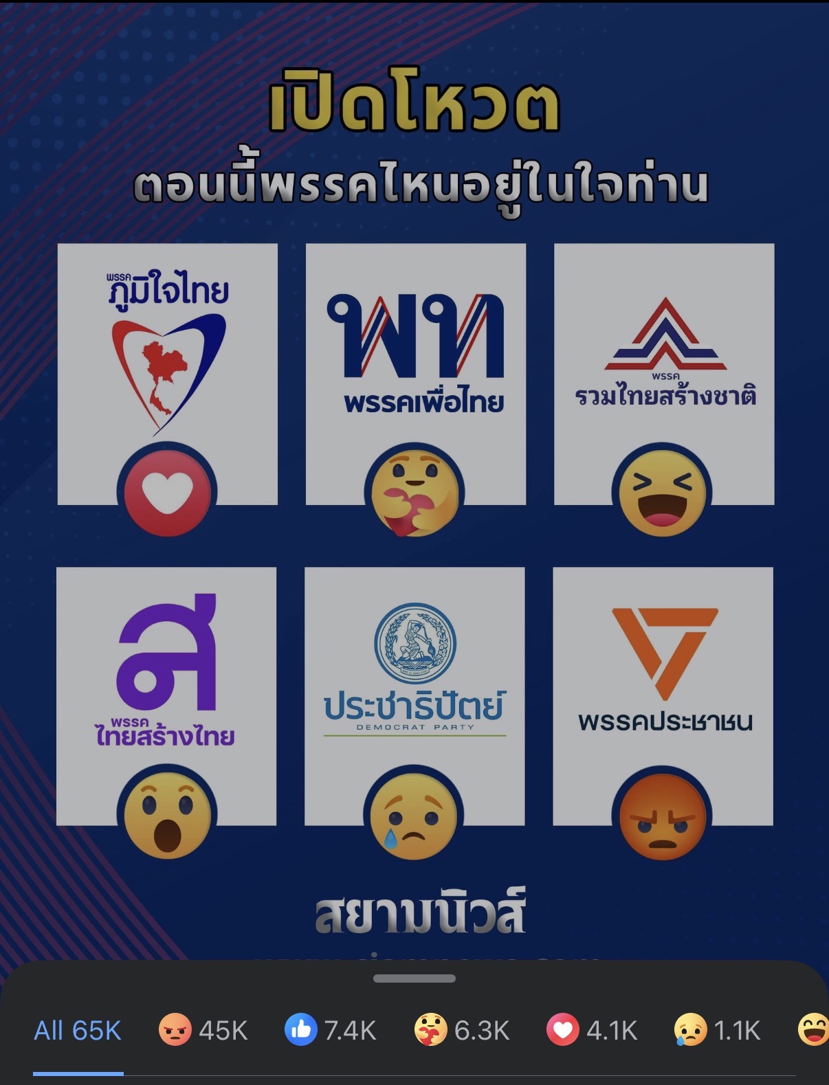 แต่เวลาสำรวจความนิยมตามเพจต่างๆพรรคส้มกลับนำโด่ง