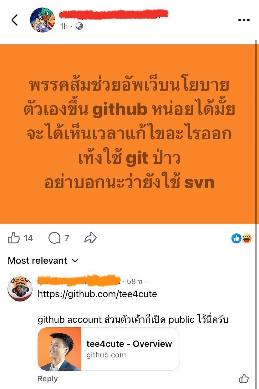 ปล. ให้หลายเม้นบอกเป็นแบก น่าจะมาแค่แซะแหละ ดูจากแนวการทำงานของพรรค ยังไงก็ใช้ version control แน่ ๆ อยู่แล้ว