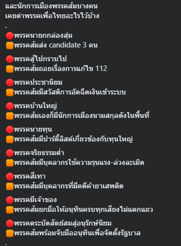 พรรคส้มมีปาร์ตี้ลิสต์เกี่ยวข้องกับทุนใหญ่