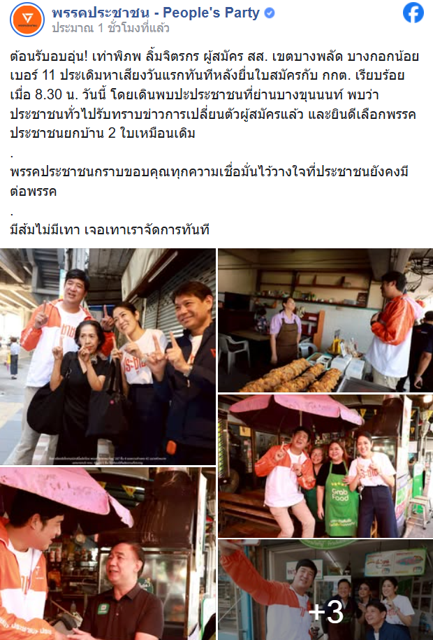 โดยเดินพบปะประชาชนที่ย่านบางขุนนนท์ พบว่าประชาชนทั่วไปรับทราบข่าวการเปลี่ยนตัวผู้สมัครแล้ว