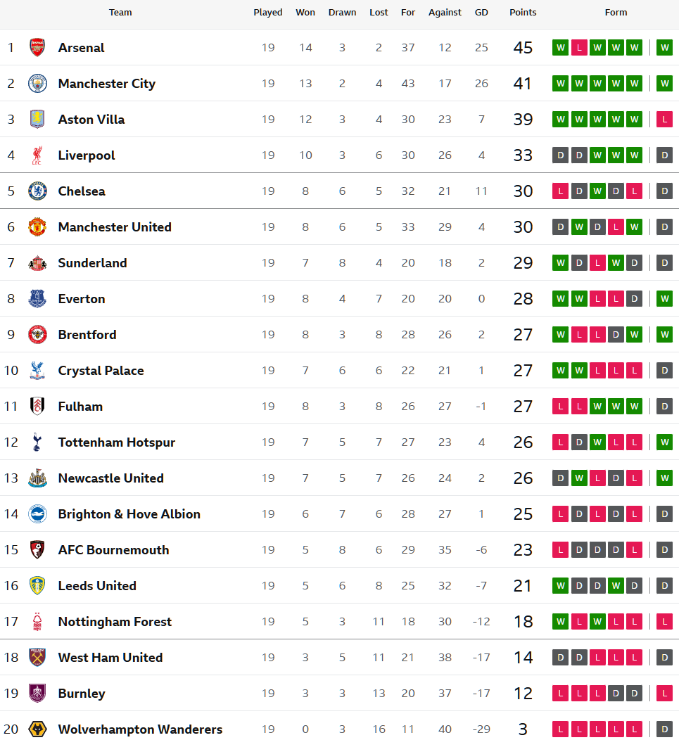 แมนเชสเตอร์ ซิตี้ เริ่มต้นปีใหม่ไม่ค่อยสวยเจอ ซันเดอร์แลนด์ เล่นใจสู้จนต่างฝ่ายต่างผลัดกันได้ลุ้น แล้วถึงแม้ครึ่งหลัง เรือใบสีฟ้า จะมีช่วงให้กดดันต่อเนื่องแต่เจาะตาข่ายไม่ได้เลยจบเกมเสมอกับ แมวดำ 0-0 ทำให้ตามหลัง อาร์เซน่อล จ่าฝูงเพิ่มเป็น 4 แต้ม