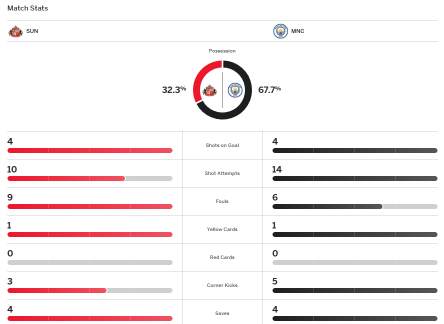 จบเกม แมนฯ ซิตี้ ได้แค่เสมอกับ ซันดเอร์แลนด์ 0-0 ทำให้พวกเขาสะดุดหลังชนะมา 6 เกมรวดในลีกและแต้มเดียวไม่ใช่ข่าวดีตามหลัง อาร์เซน่อล เพิ่มเป็น 4 คะแนน