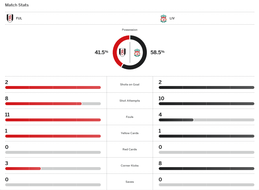 แฮร์รี่ วิลสัน ยิงประตูทีมเก่าให้เจ้าถิ่นขึ้นนำไปก่อน แต่ฟลอเรียน เวียร์ตซ์ มาตีเสมอได้เป็นจังหวะที่เขาเหมือนล้ำหน้าแต่ VAR เช็คนานก่อนให้ผ่านเฉย ไม่เท่านั้นช่วงทดเจ็บนาทีที่ 4 โคดี้ กัคโป มายิงแซง ทว่าเกมไม่จบผ่านมานาทีที่ 7 แฮร์ริสัน รีด ตะบันอย่างงามทำให้ฟูแล่ม ตามตีเสมอได้หน้าตาเฉย 2-2