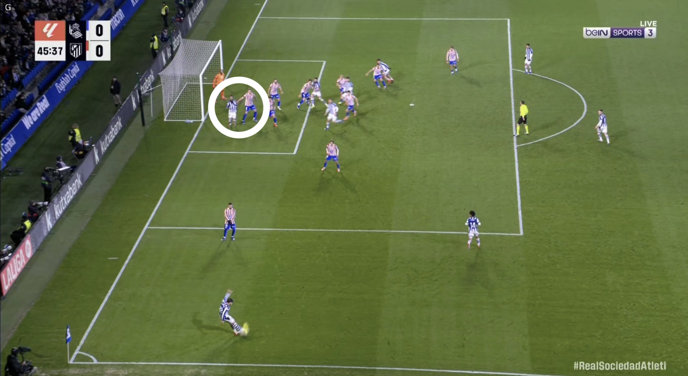 แอตฯ มาดริด ได้เตะมุม แล้วบอลทะลักเข้าหา ญอเรนเต้ รอยิงจากแถวสองอยู่แล้ว แต่ซัดบอลเหินข้ามคานไปเยอะ