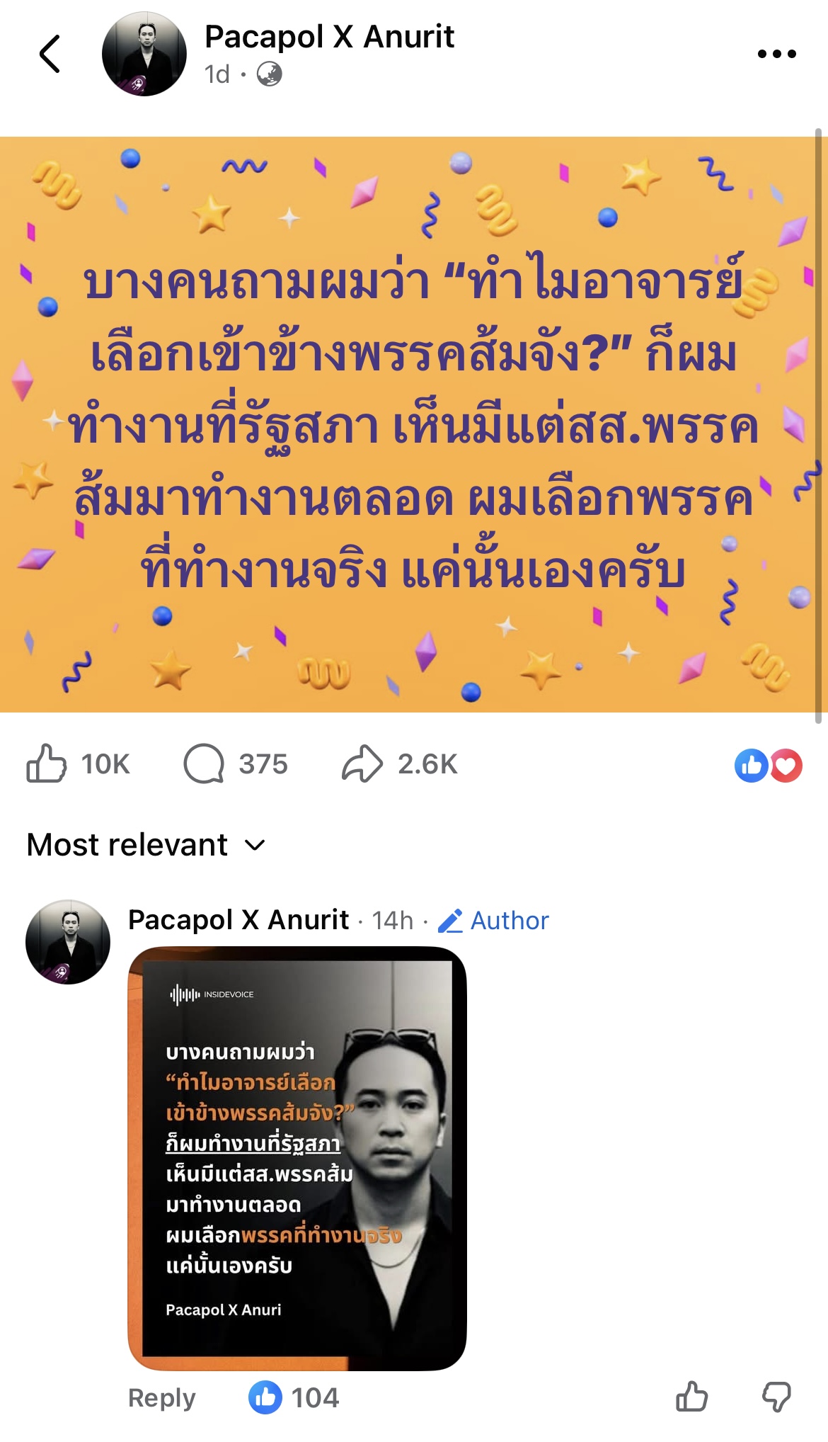 [RE: “ผมเลือกพรรคที่ทำงานจริงแค่นั้นเองครับ“]