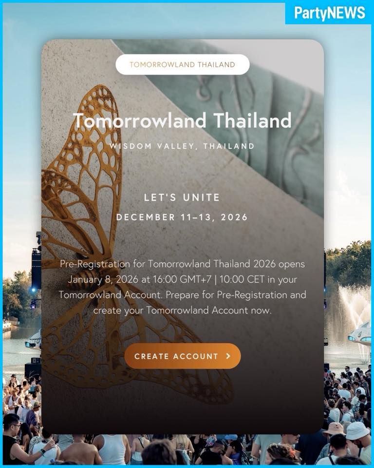Tomorrowland Thailand ประกาศจัดอย่างเป็นทางการ ในวันที่ 11-13 ธันวาคม 2026 นี้ ที่ Wisdom Valley ชลบุรี