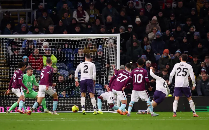 เบิร์นลีย์ ยังเหนียว ขนาดดอร์กูชิปบอลเข้าตัว บราฟก้า บอลที่ทำท่าจะเข้าประตูอยู่แล้ว ยังโดเอสเตฟ ตามมาสกัดบอลทิ้งบนเส้นได้อีก
