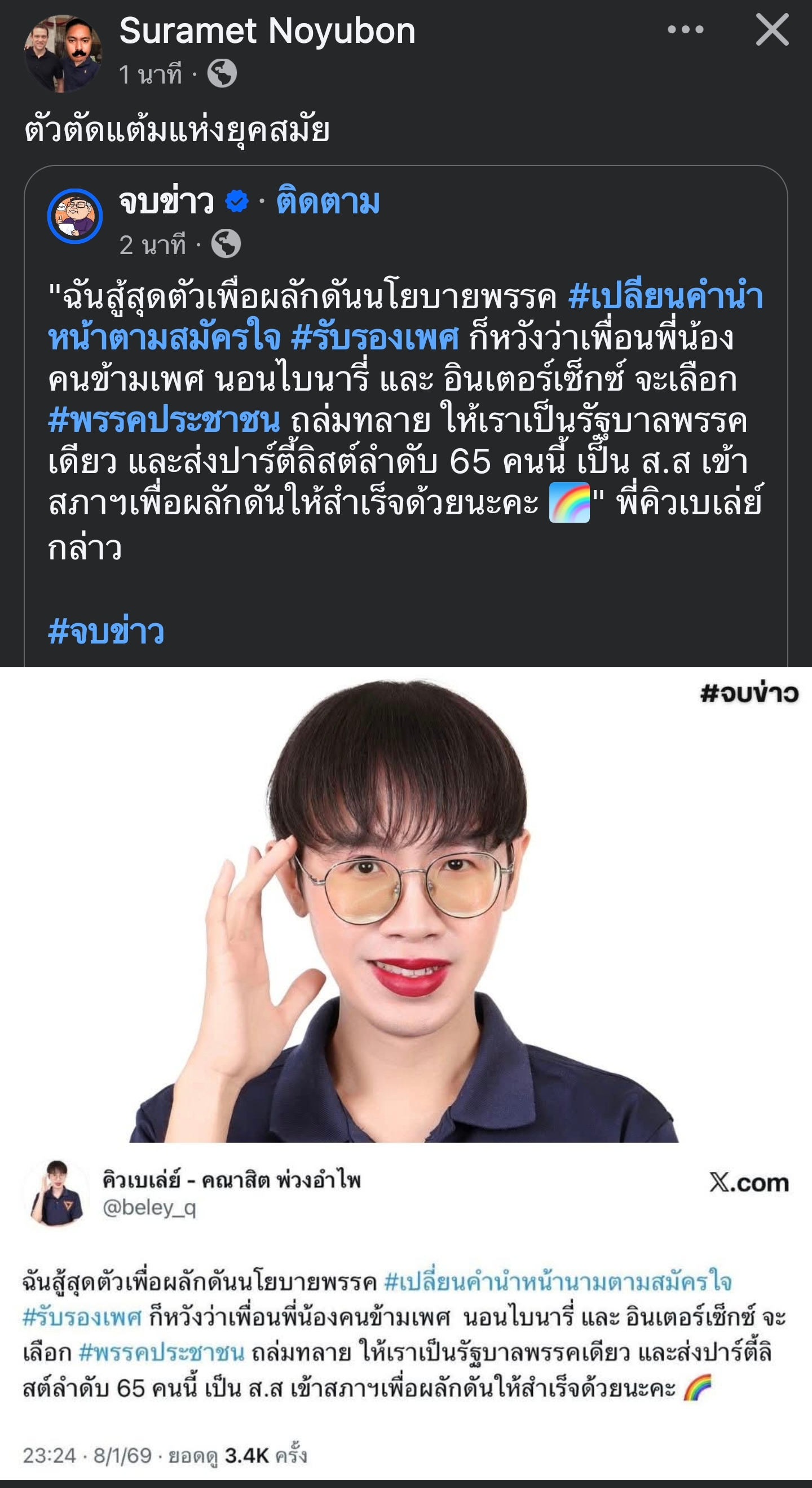 ชาว LGBT เห็นด้วยหรือไม่ เปลี่ยนคำหน้านามเป็น "นางสาว" ได้