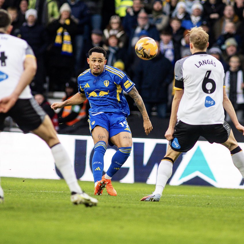 ลีดส์ ยูไนเต็ด ต้องลุ้นหน่อยหลังมีโอกาสออกนำจากจุดโทษแต่ โยเอล ปิรู ยิงไปติดเซฟและจากนั้นไม่กี่นาทีก็โดนนำ แต่ก็มาฟื้นครึ่งหลัง วิลฟรีด ญอนโต้ และ อาโอะ ทานากะ ช่วยกันทำคนละตุงพาทีมนำก่อน เจมส์ จัสติน ปิดท้ายส่ง ยูงทอง แซงกลับมาชนะ ดาร์บี่ เคาน์ตี้ 3-1 ตบเท้าเข้ารอบเอฟเอ คัพอีกทีม