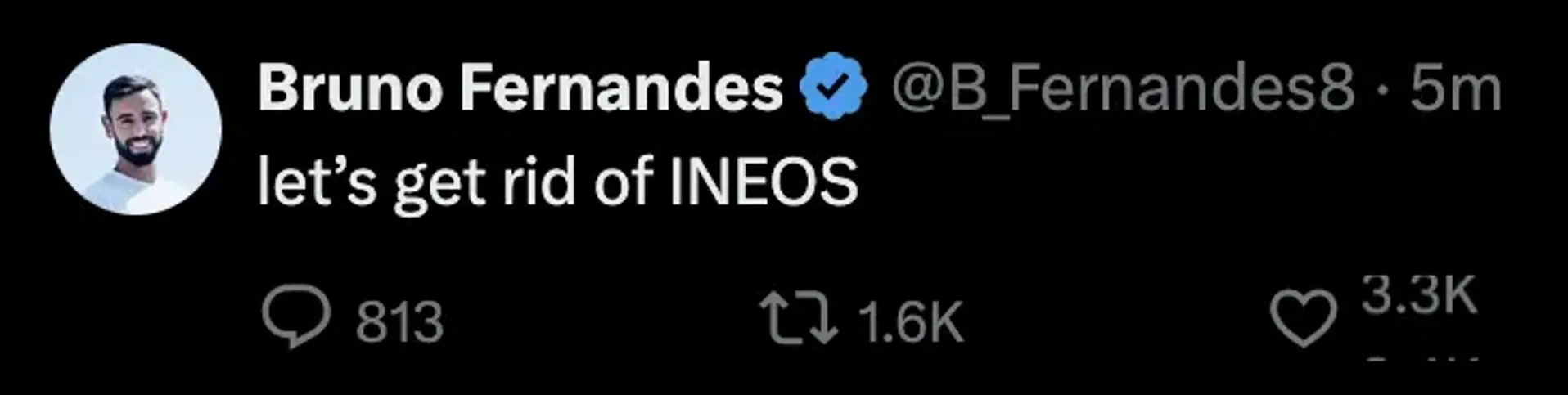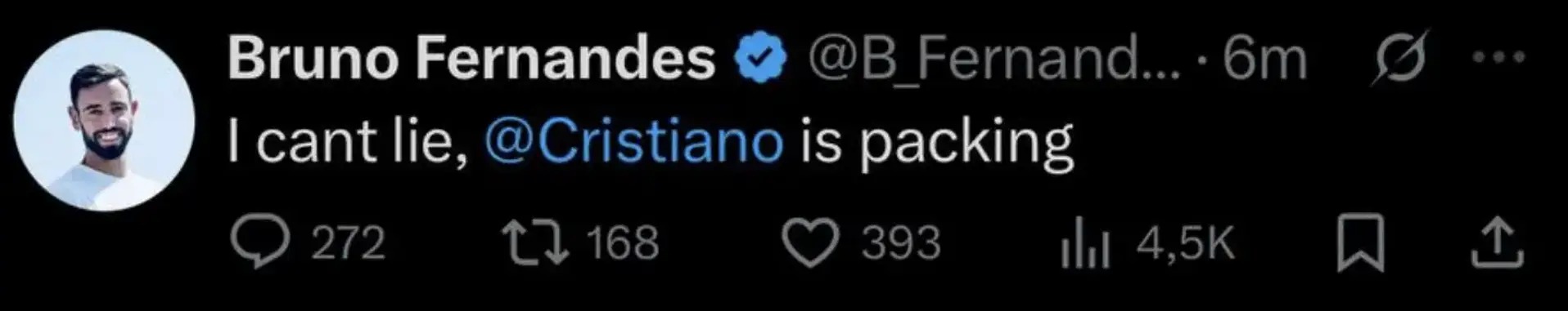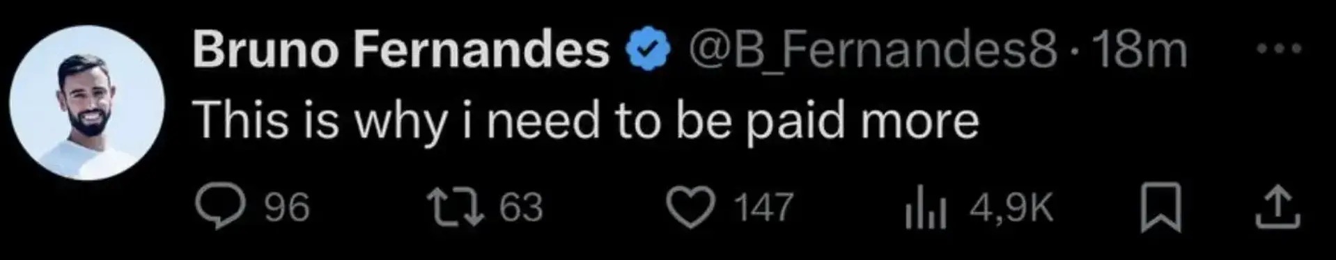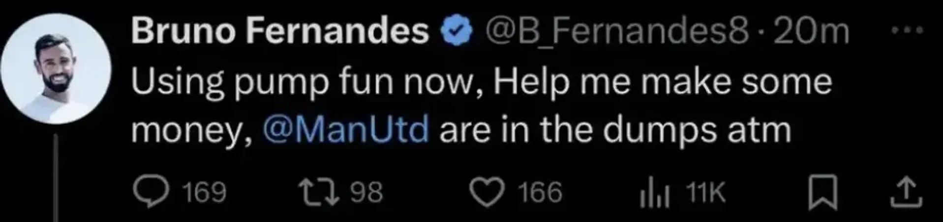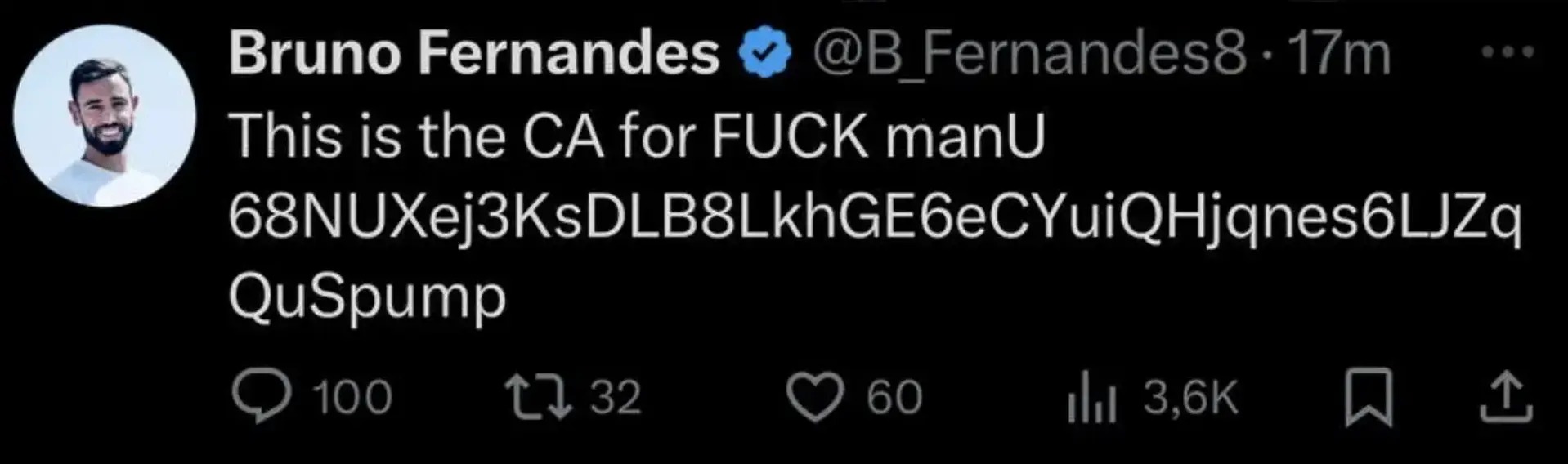 "บัญชี X ของ บรูโน่ แฟร์นานเดส ถูกแฮ็ก ขอให้แฟนบอลอย่าเข้าไปมีส่วนร่วมกับโพสต์หรือข้อความส่วนตัวใด ๆ ทั้งสิ้น" โพสต์สโมสรระบุ