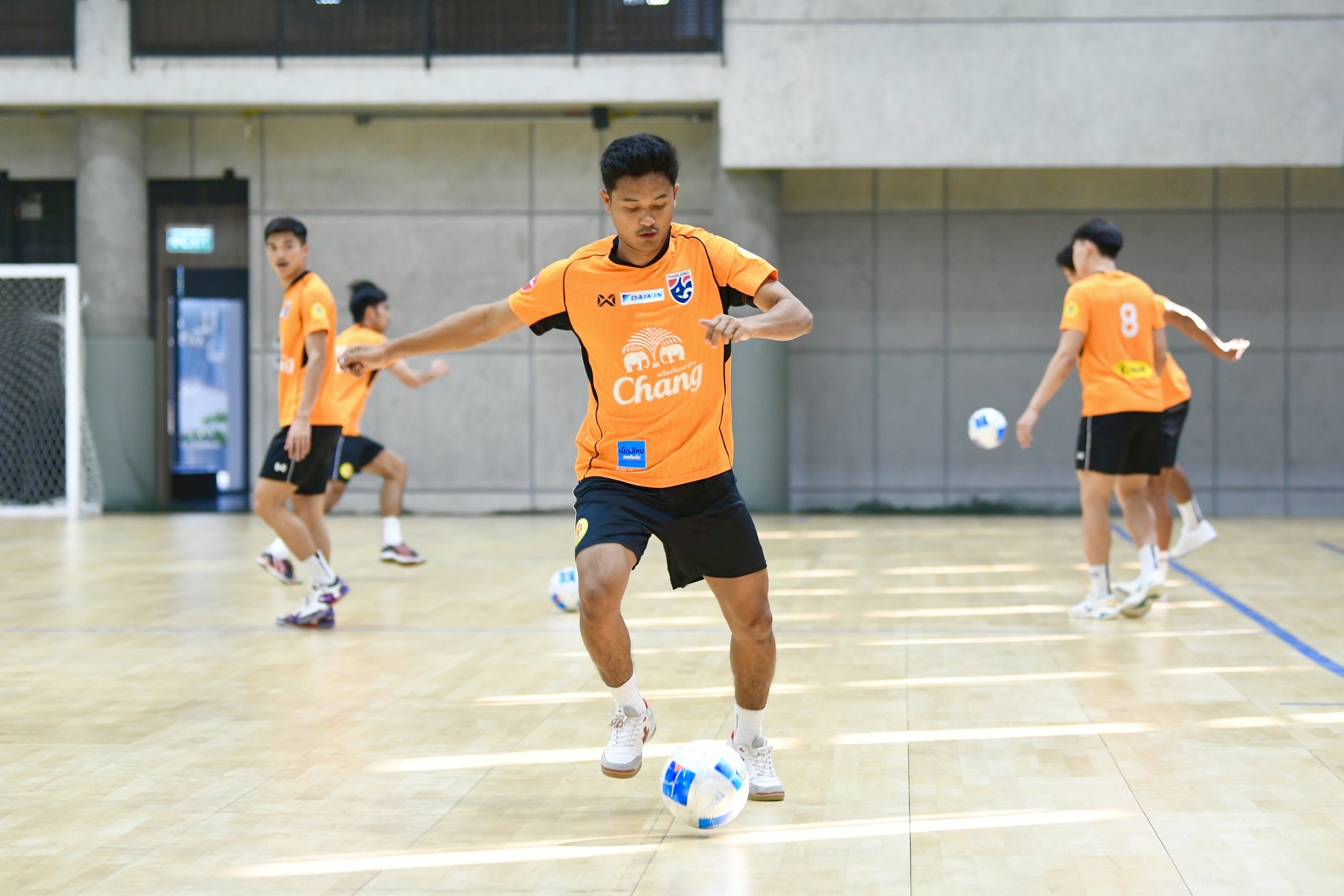 การฝึกซ้อมครั้งนี้ "โค้ชหมี" รักษ์พล สายเนตรงาม หัวหน้าผู้ฝึกสอนฟุตซอลชายทีมชาติไทย ได้ทาง มูฮัมหมัด อุสมานมูซา ผู้เล่นหน้าเป้าจากสโมสรจิมบี คาร์ตาเญน่า ในลีกสเปน ตามสมทบซ้อมกับทีมเป็นมื้อแรก โดยเน้นไปที่การเสริมความฟิตของร่างการและลงรายละเอียดแทคติกทั้งเกมรุกและเกมรับ ซึ่งใช้เวลา 2 ชั่วโมง