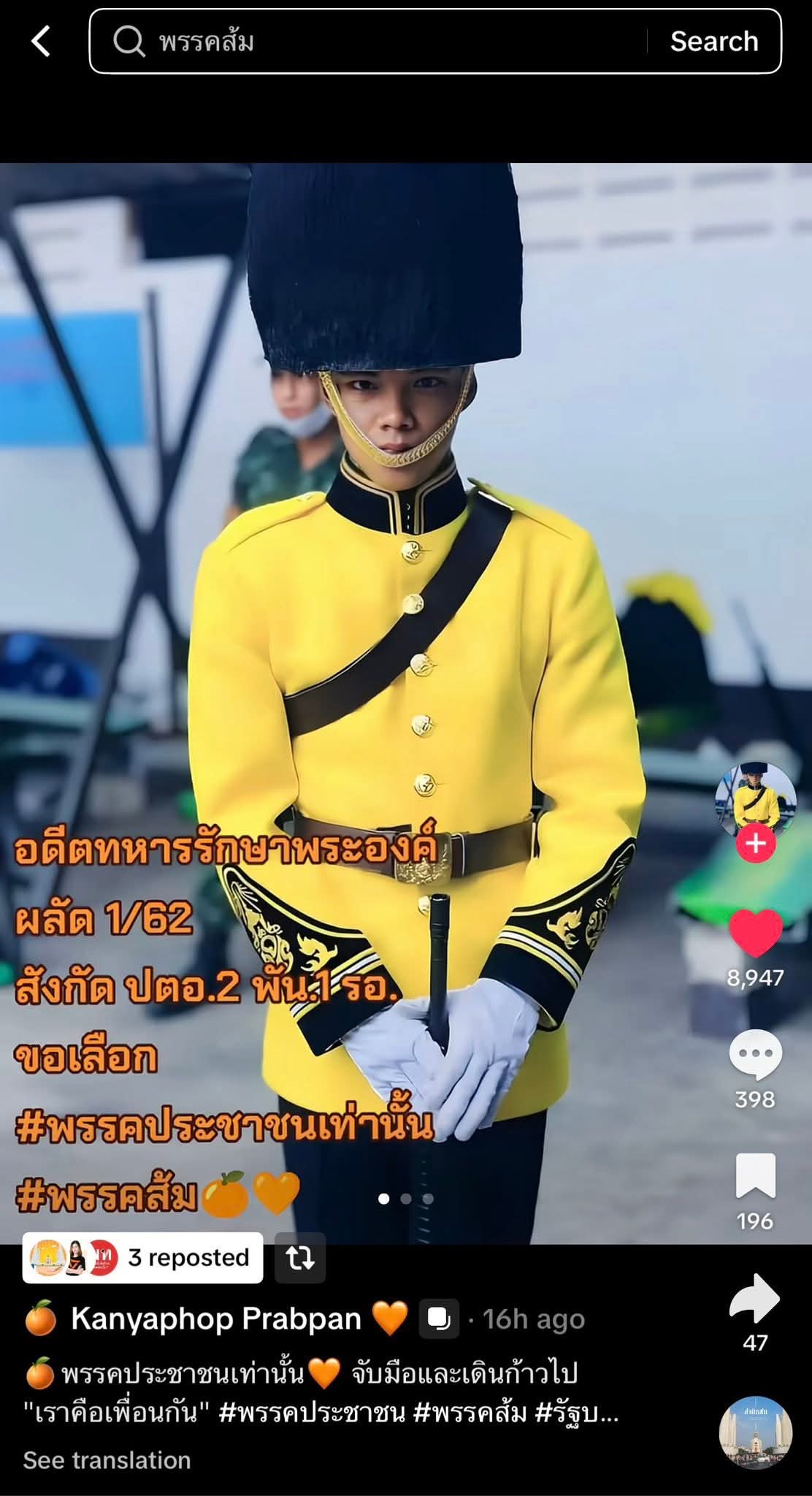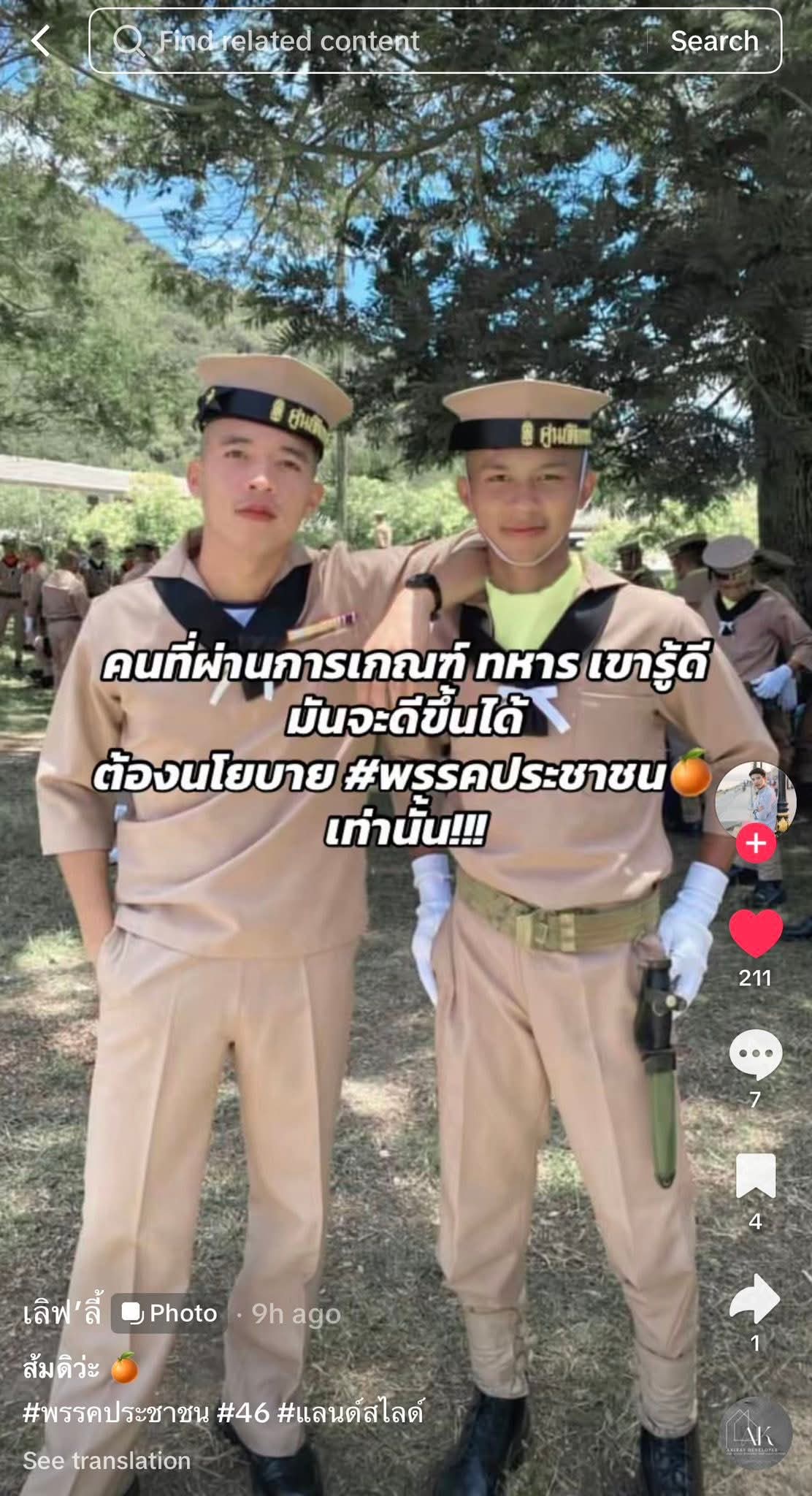 จริงๆพวกทหารก็รักส้มเยอะอยู่นะครับ รอบนี้เป็นไวรัลใน tiktok ก็เยอะที่ออกมาพูด มาลงว่าชอบส้ม