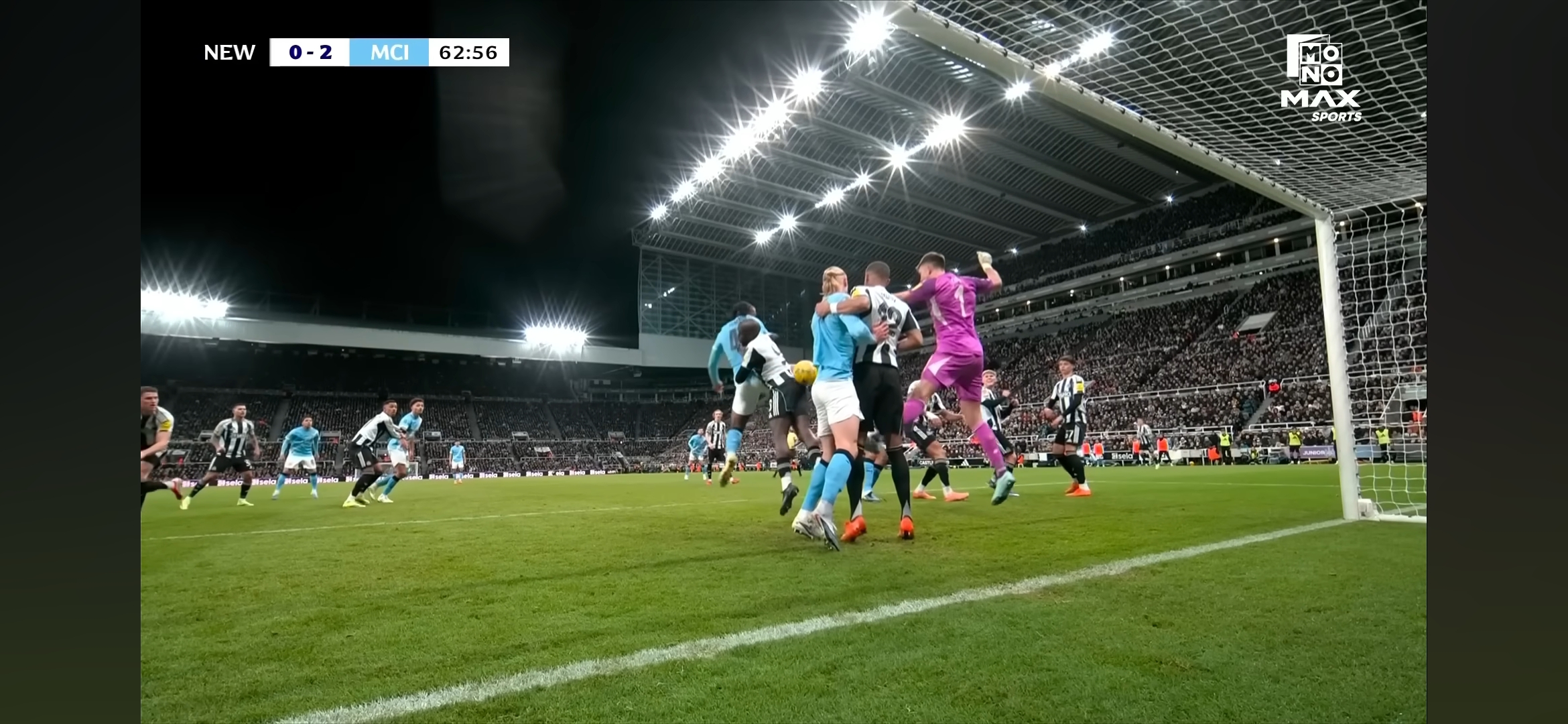 แล้วฮาลันด์มีแอคชั่นคือสกีนไม่ให้กองหลังนิวคาสเซิลเข้าถึงบอลได้ วิถีบอลเฉียดเจ้าตัวไปนิดเดียว