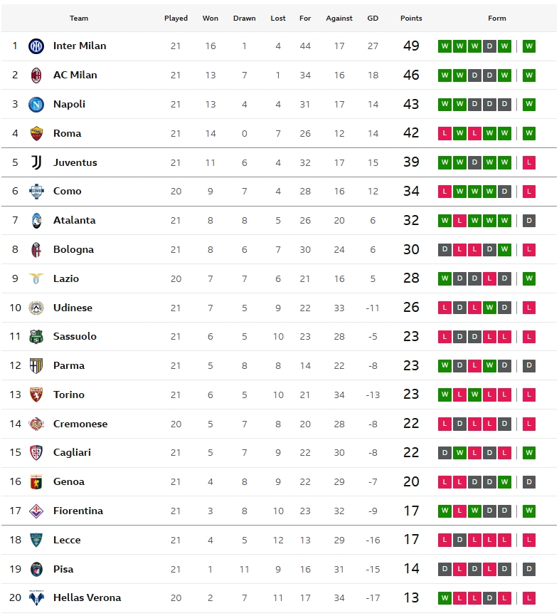 เอซี มิลาน บุกแล้วบุกอีก แต่เจอความยอดเยี่ยมของ วัลดิมิโร่ ฟัลโคเน่ นายทวารเลชเช่ งัดฟอร์มเซฟไว้ได้ตลอด สุดท้าย นิคลาส ฟูลล์ครูก ตัวสำรองลงมาโหม่งจ่อ ๆ นาทีที่ 76 เบิกสกอร์แรกของตัวเอง เป็นประตูชัยให้ทีมของ มัสซิมิเลียโน่ อัลเลกรี เอาชนะไปแบบหวุดหวิด 1-0 ไล่จี้ อินเตอร์ มิลาน กลับมาเป็น 3 คะแนนตามเดิม