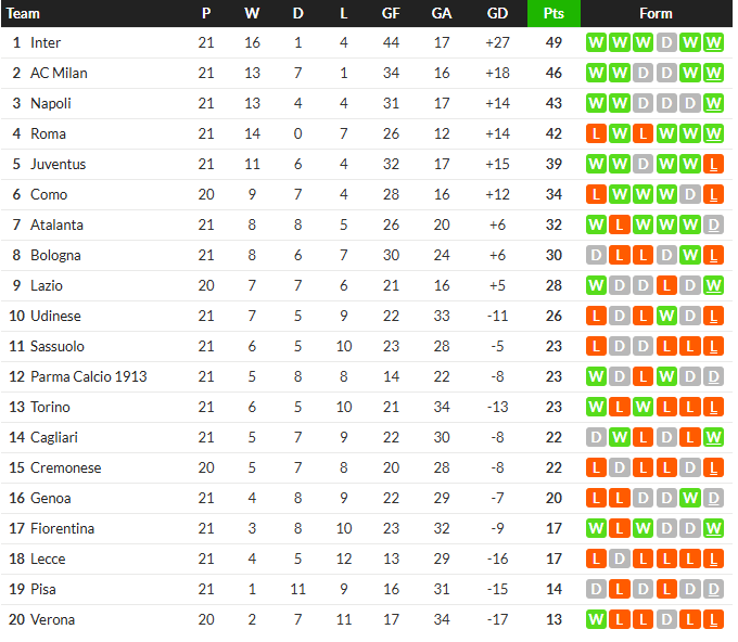 สรุปผล เซเรียอา อาทิตย์ที่ 18 มกราคม 2026
